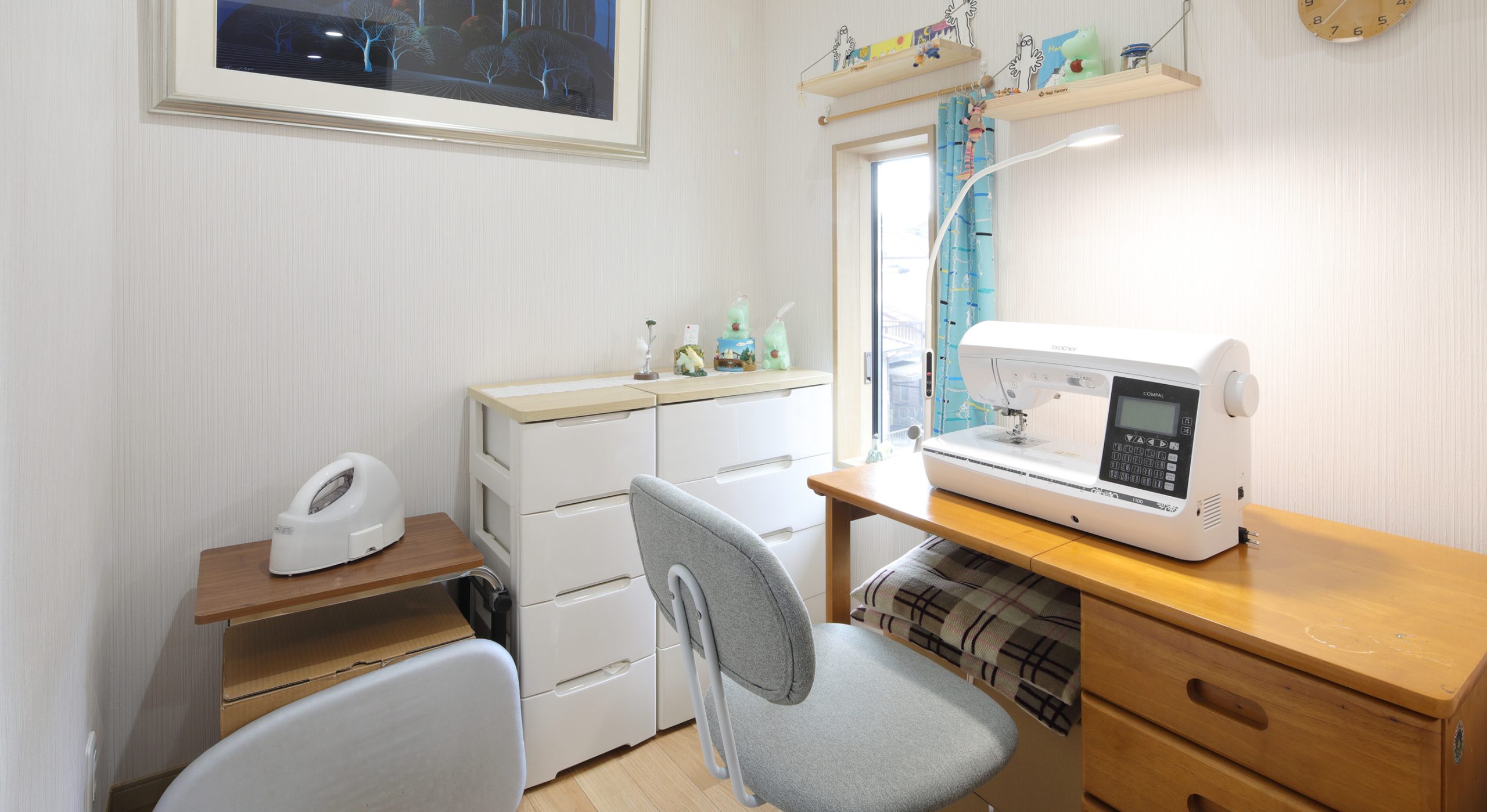 玄関の吹き抜けには、奥さまの趣味であるミシンを楽しむ部屋を新たに造りました。ミシンの出し入れをする手間がなくなり、いつでも大好きなハンドメイドに没頭できる自分だけの理想の空間になりました。