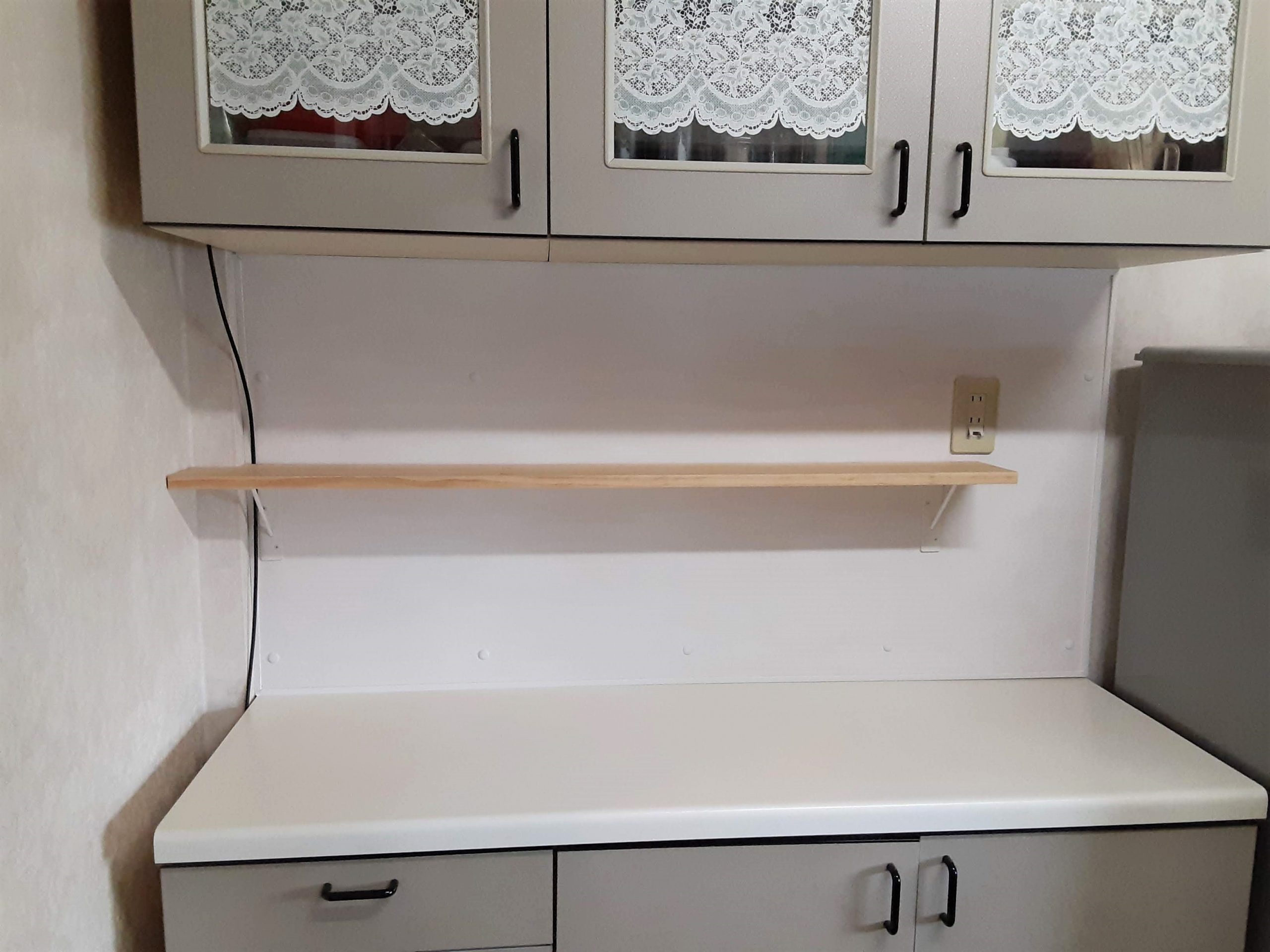 今あるスペースを最大限に活用するため、まずはキッチンのカップボードに棚板を設置させていただきました。