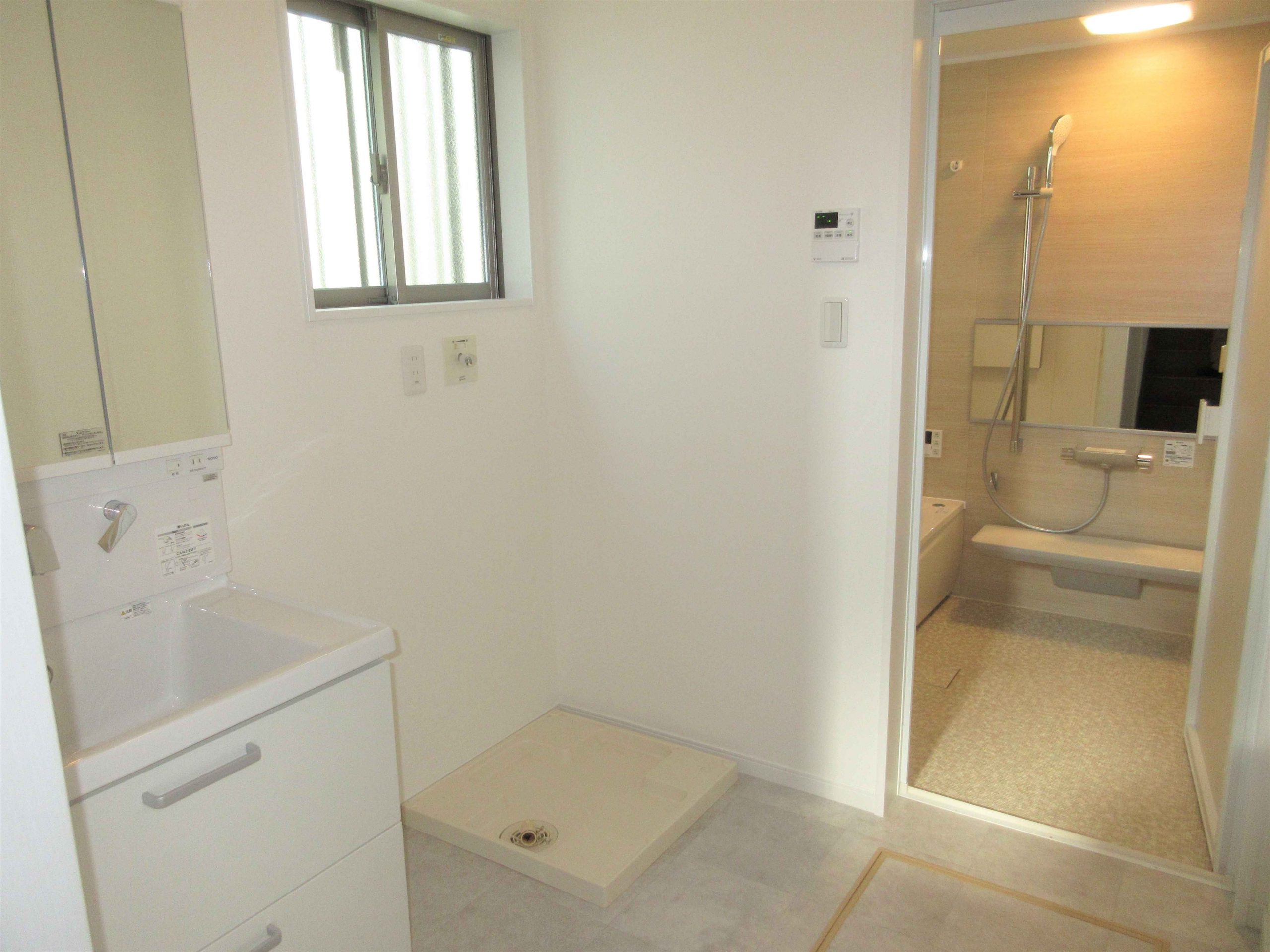 洗面脱衣室クロス貼替え