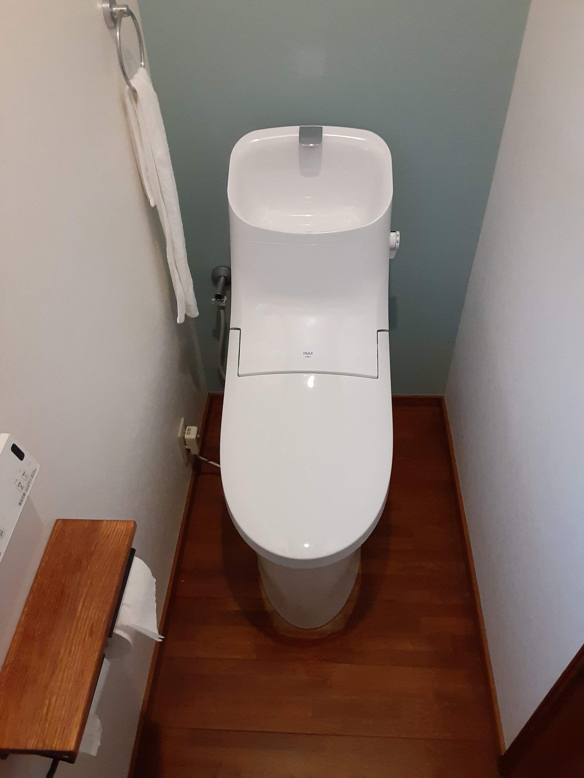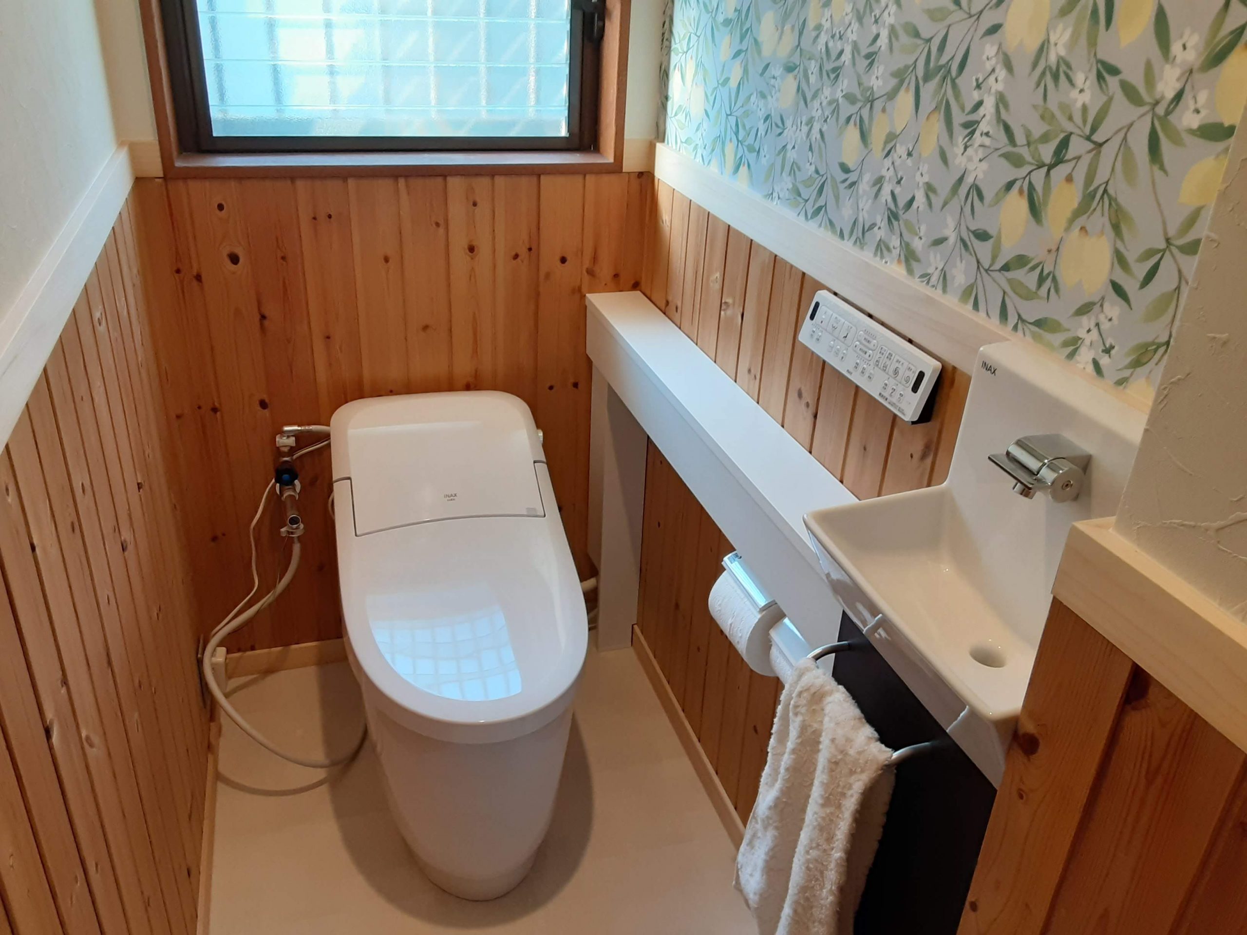 1階のトイレは、コンパクトサイズで空間を広く使えるタンクレス風のウォッシュレット一体型に取替えて、新たに使いやすい手洗いカウンターを設置しました。