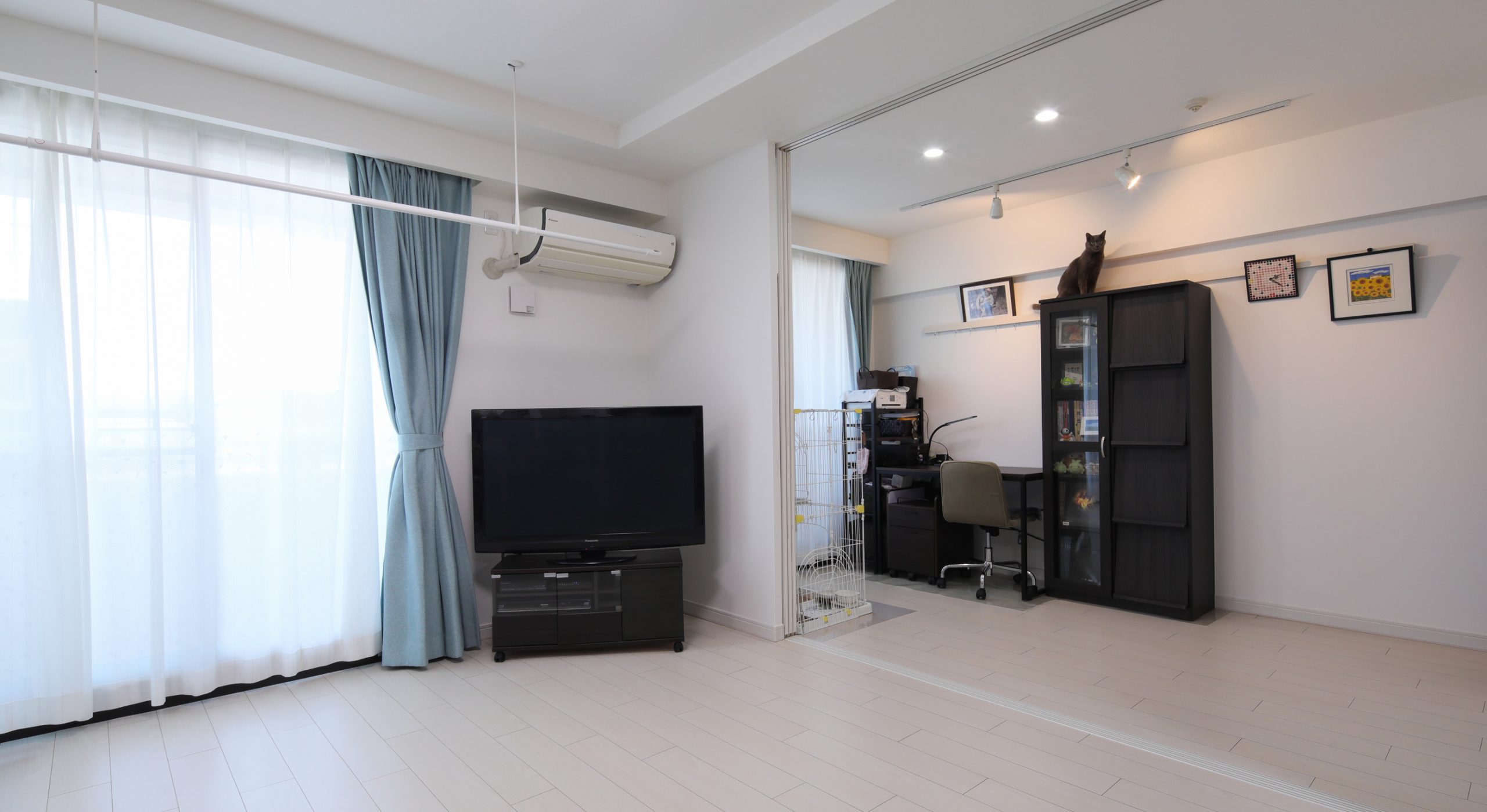 天吊型室内用物干し設置、床張替え、クロス貼替え、照明取替え