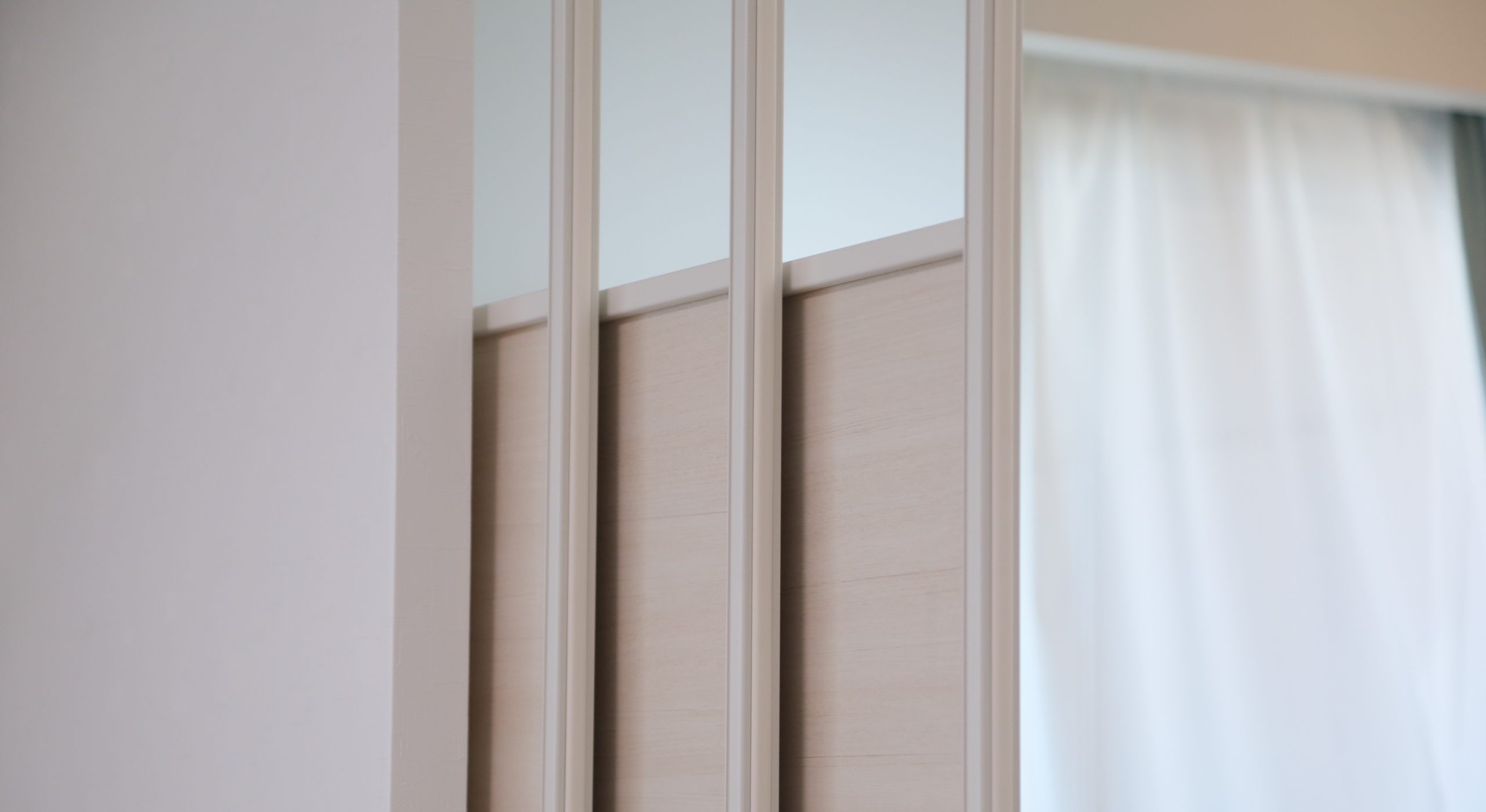 間仕切り壁を撤去して、新たに可動式の間仕切り戸を設置。間仕切り戸を開ければ広々とした大空間のLDKに、戸を閉めても書斎に明るい光が入りるよう工夫しました。