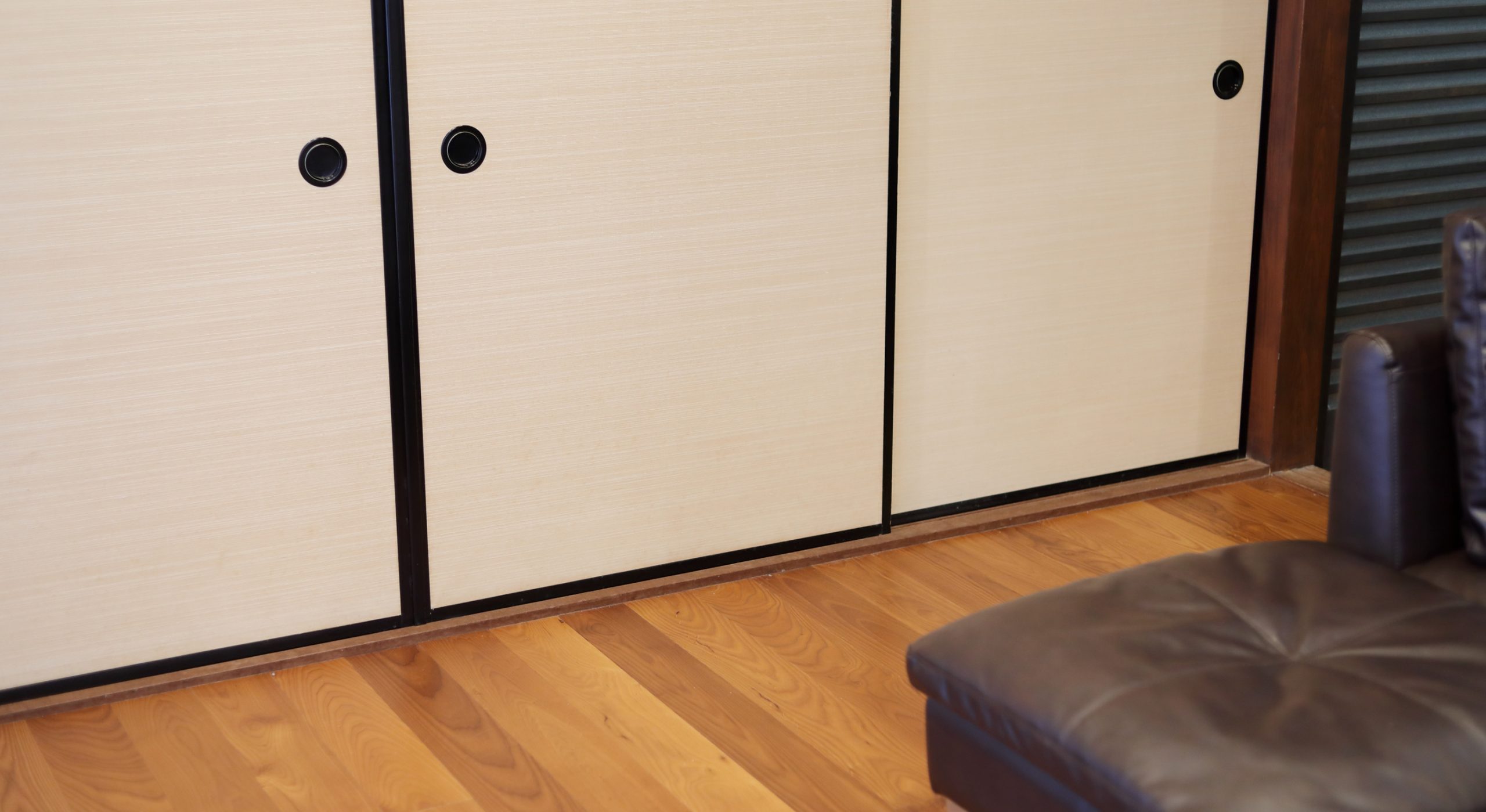 床暖房を敷設した床には無垢のフローリングを使用。素足で歩いても気持ちの良い天然木の優しい肌触りと風合いで、毎日の生活をちょっと贅沢なものにしました。旧和室にあった障子や襖はそのまま活かし、黒色の自然塗料を使ってお客さまと一緒に塗装することで、部屋の個性を引き出しました。