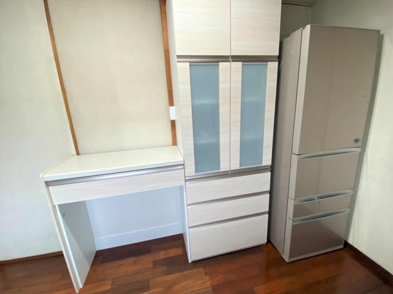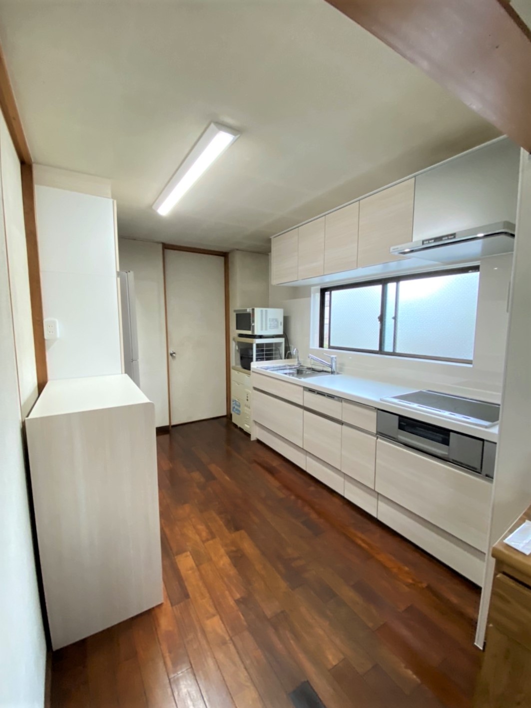 システムキッチン取替え、アコーディオンカーテン撤去、間仕切り戸設置 -