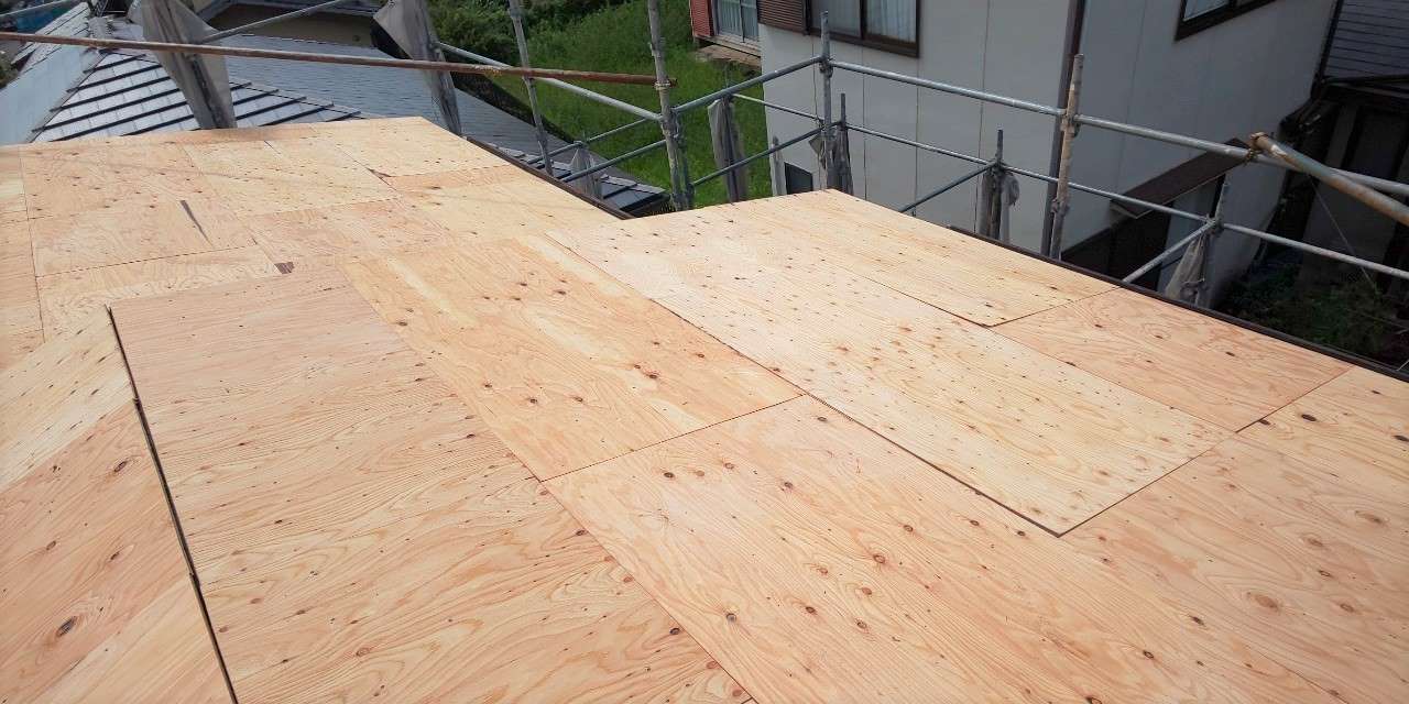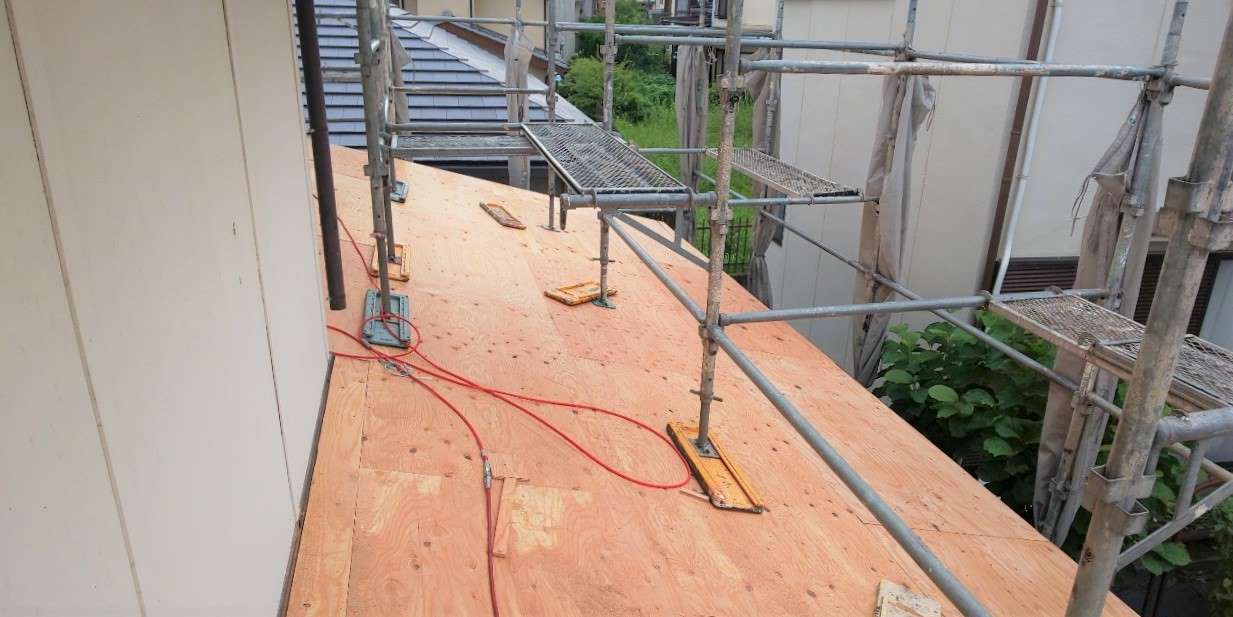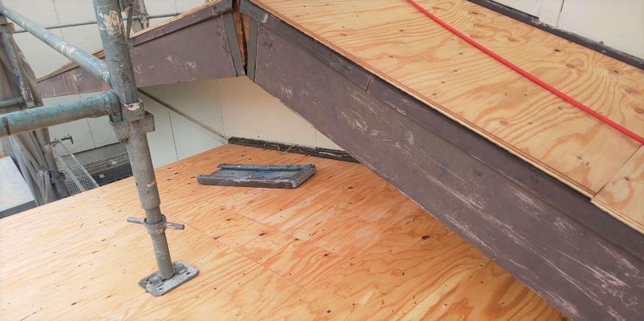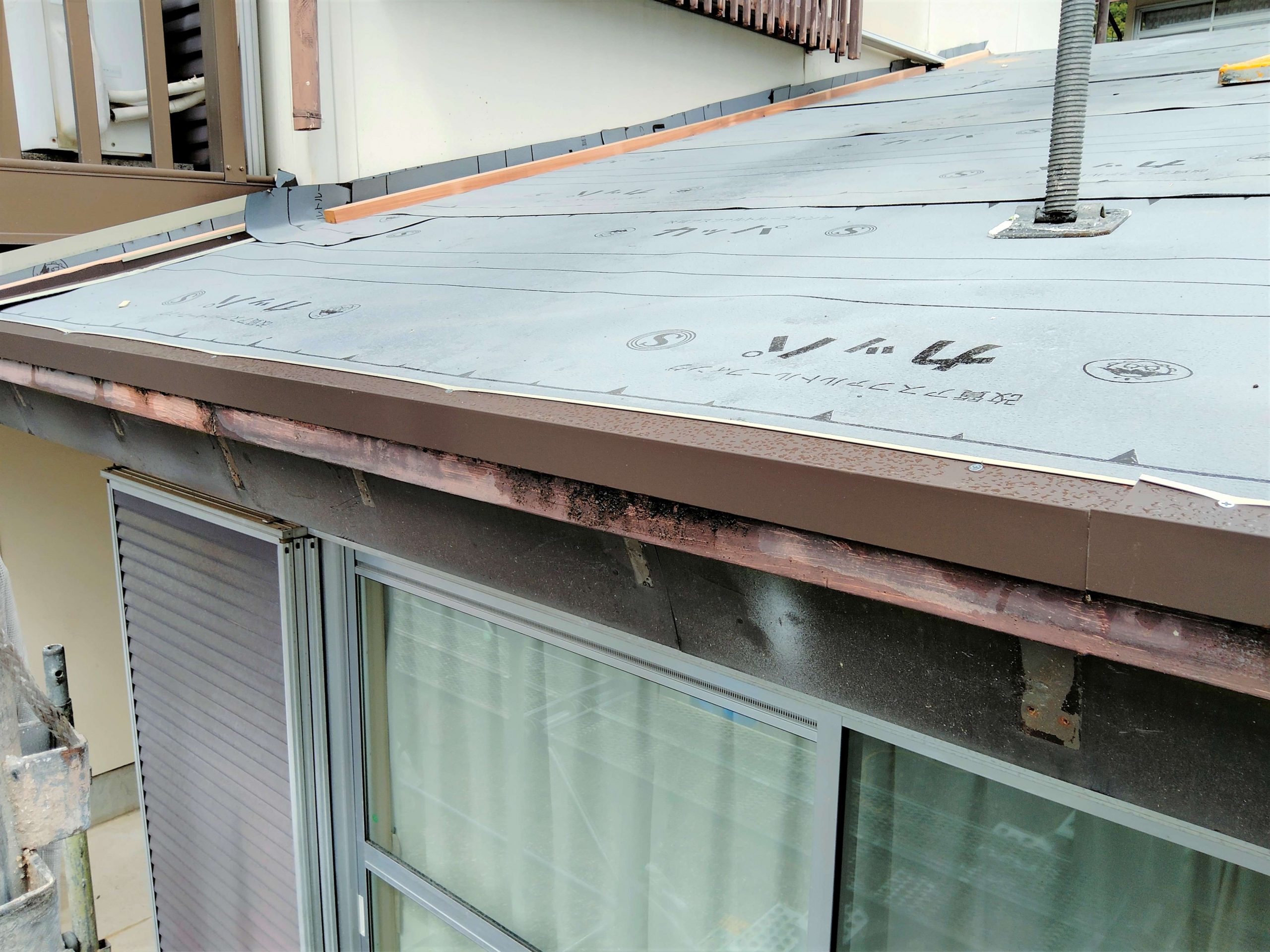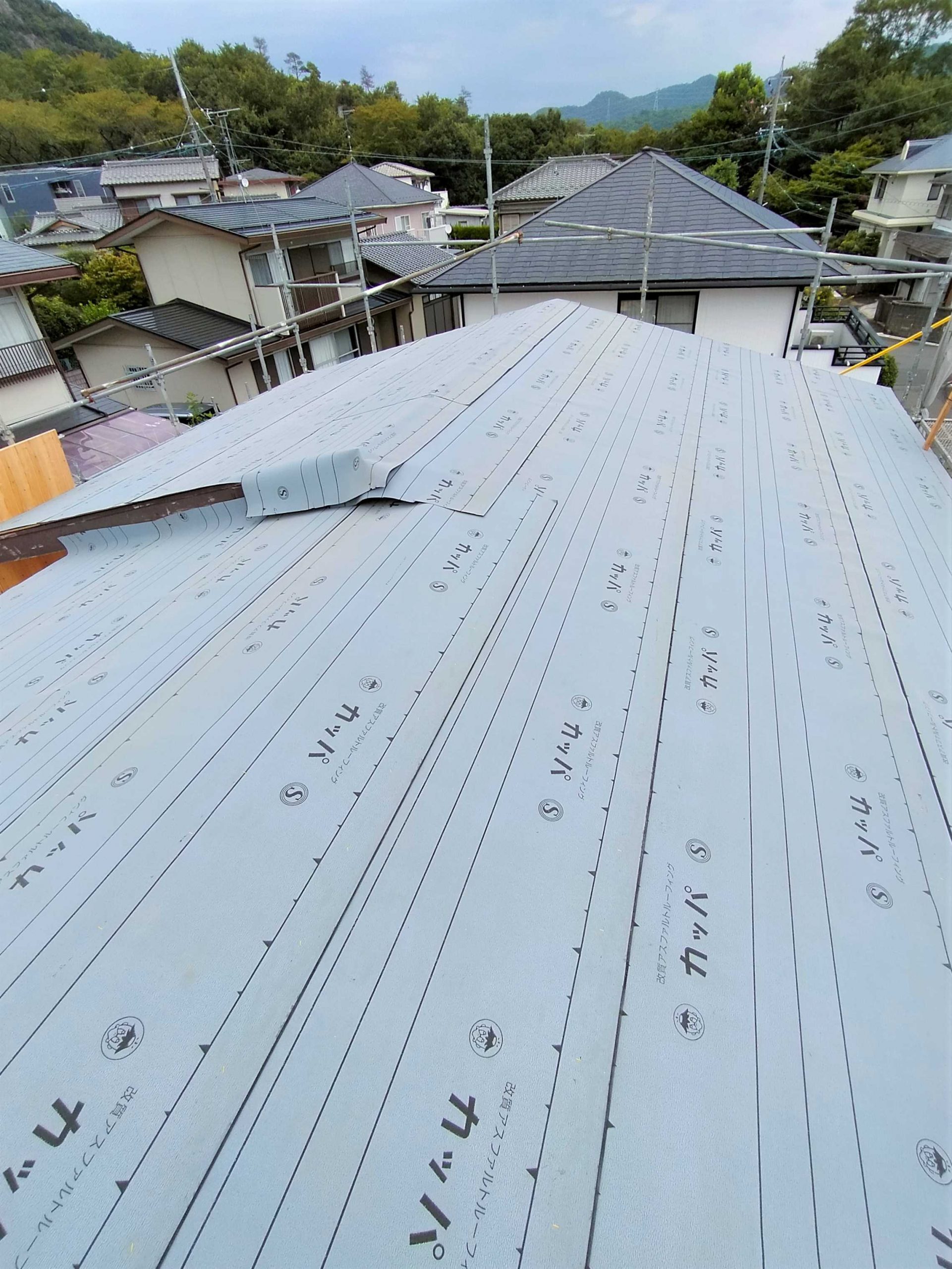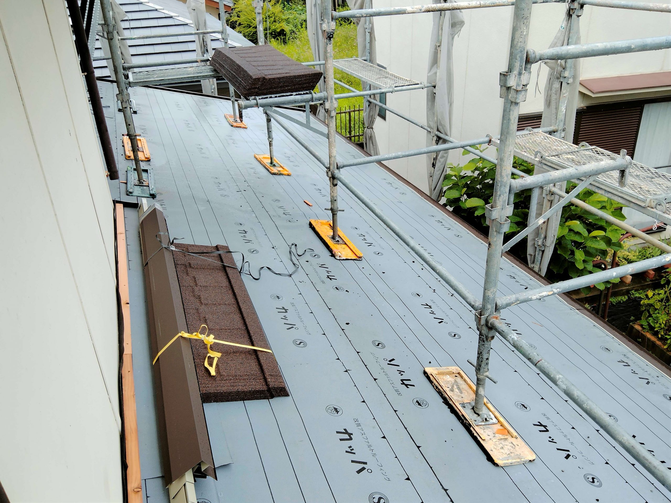 ストレート屋根は経年劣化によりひび割れた状態になっていたため、葺き替え工事をご提案させていただきました。