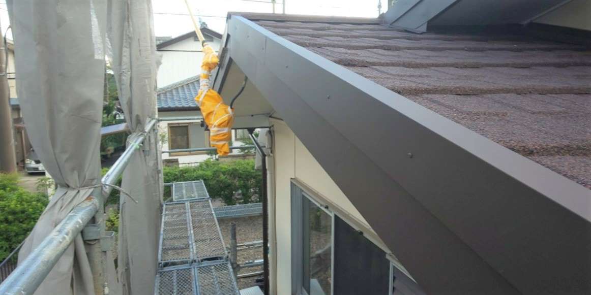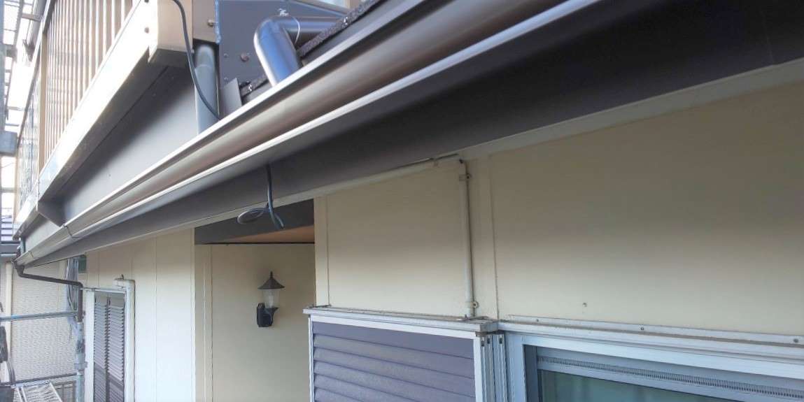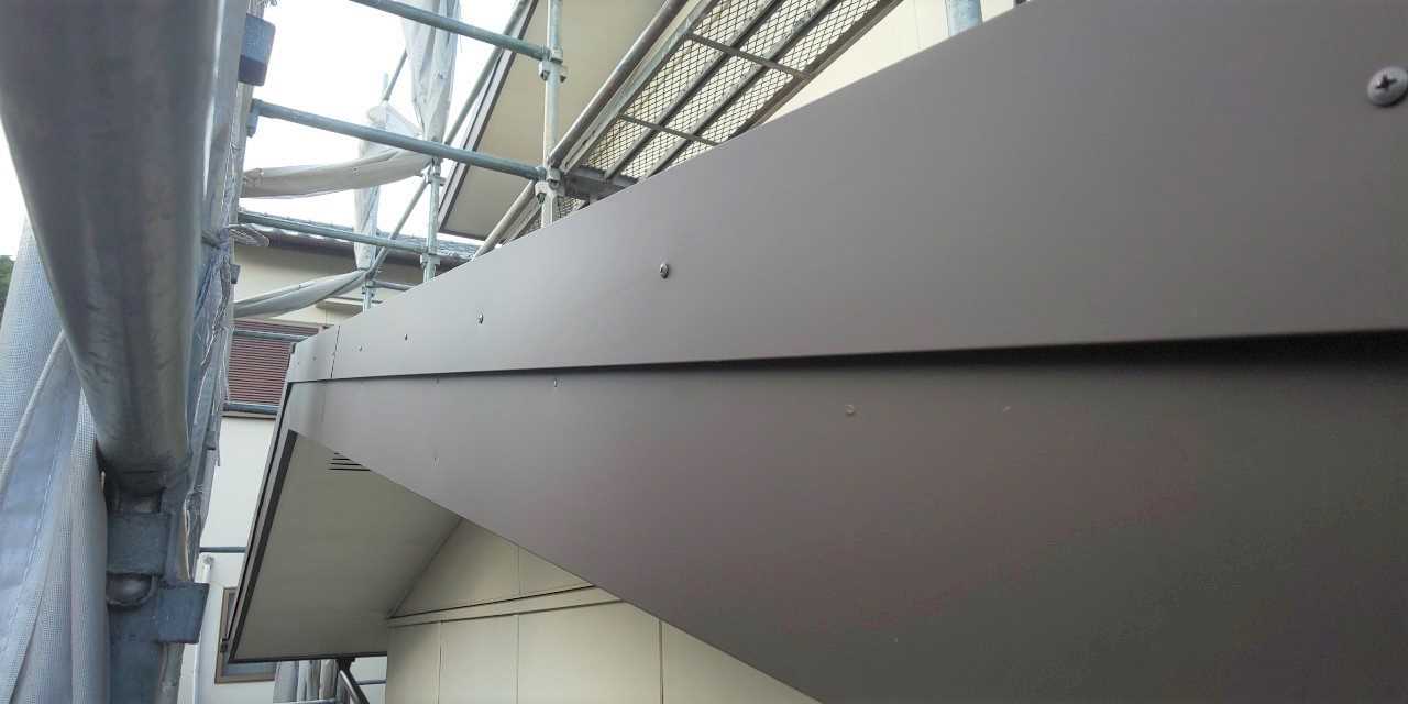 軒先の板金も劣化していたため撤去し、鼻隠しを板金で包み軒樋も取替えることで、見た目もすっきりキレイに仕上げました。