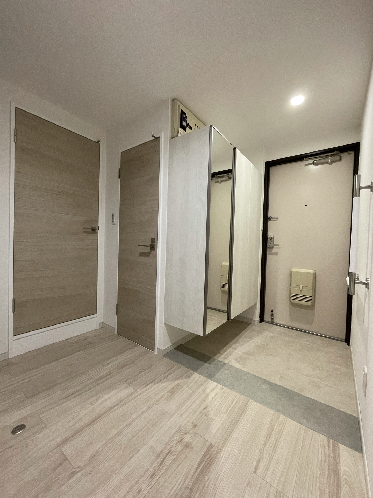「収納」は、ダイニングに大容量かつすっきり納まる大型の壁面収納を設置。TVボードやシューズクロークはフロートタイプにすることで、抜け感が出て部屋全体がスタイリッシュで広く感じられる空間になりました。