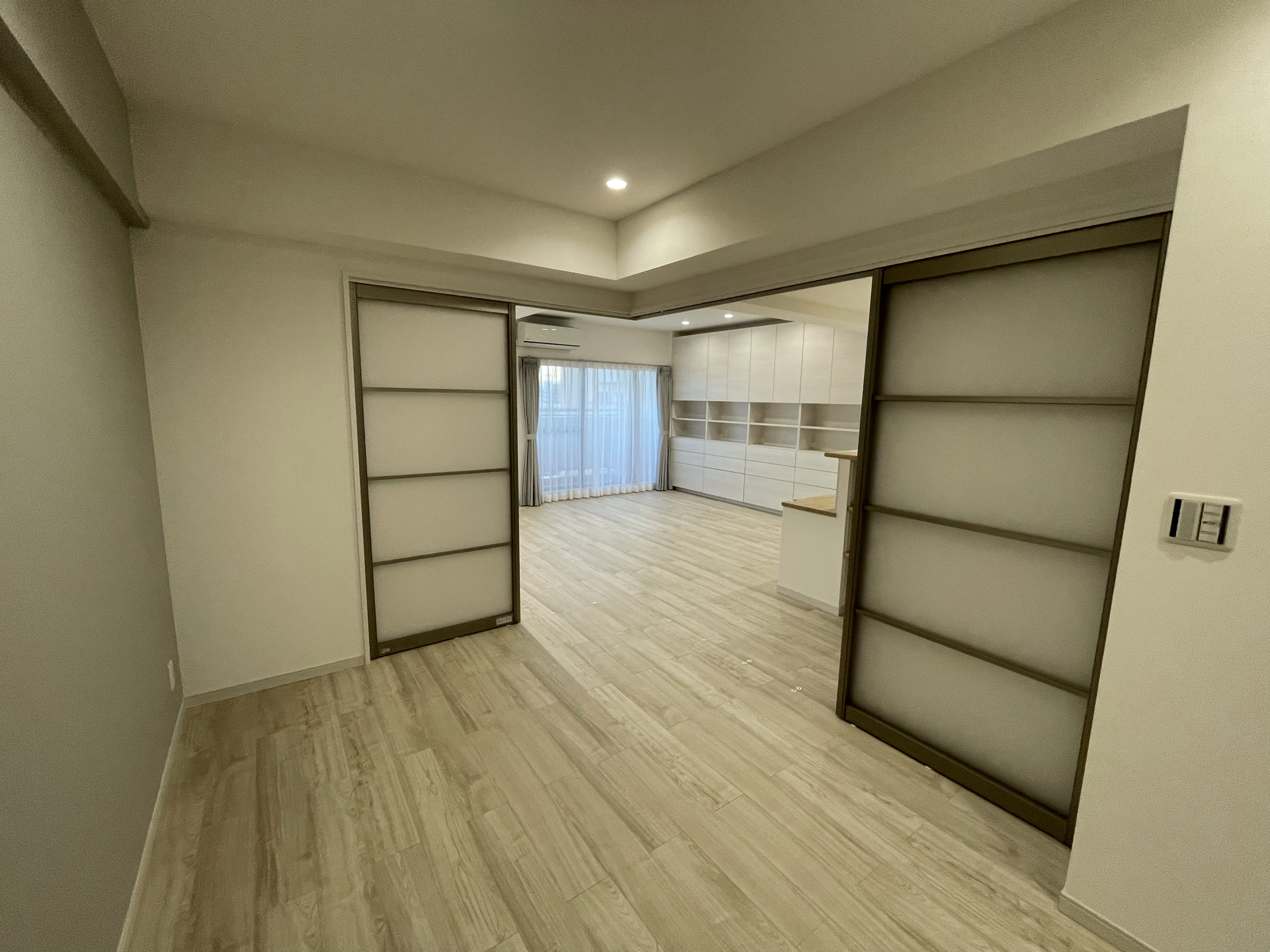 和室は、畳からフローリングに張替えて、寝室と明るいリビングに生まれ変わりました。