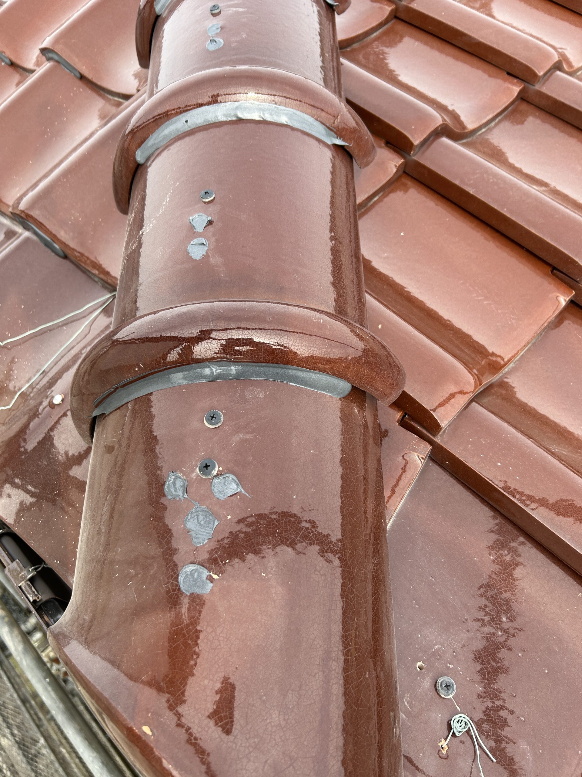 屋根は、強風で瓦が浮いてしまう可能性があったため、瓦の浮き止めと棟瓦のビス止めをおこないました。