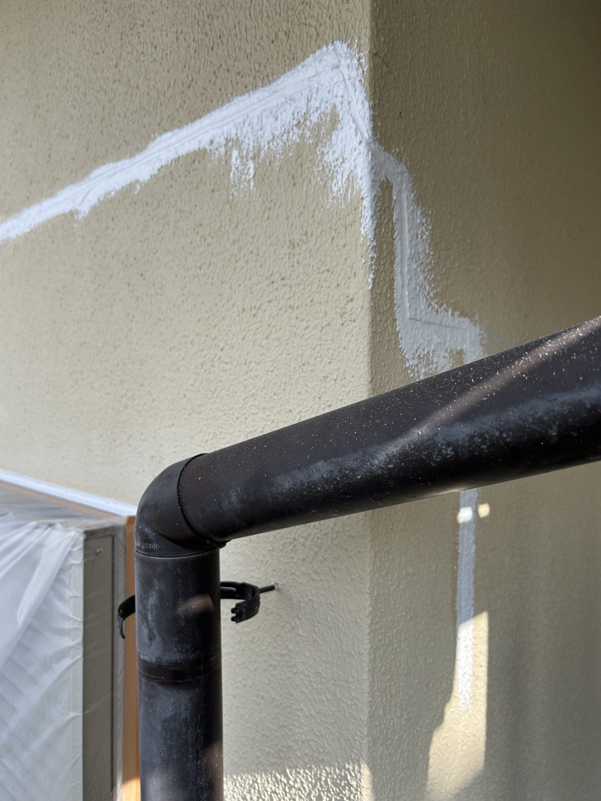 外壁のクラックは、Vカット後目地の処置をしたうえで塗装。