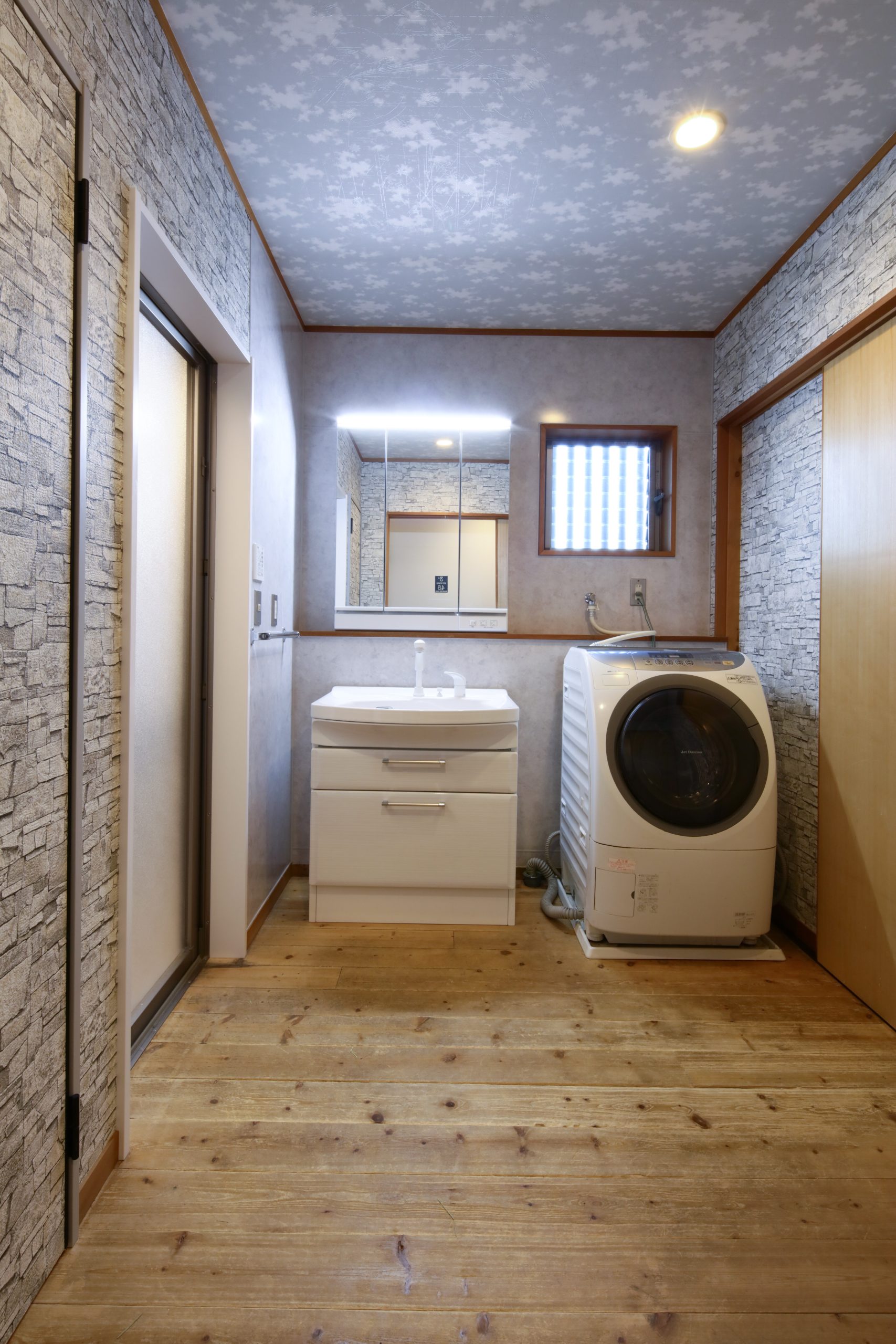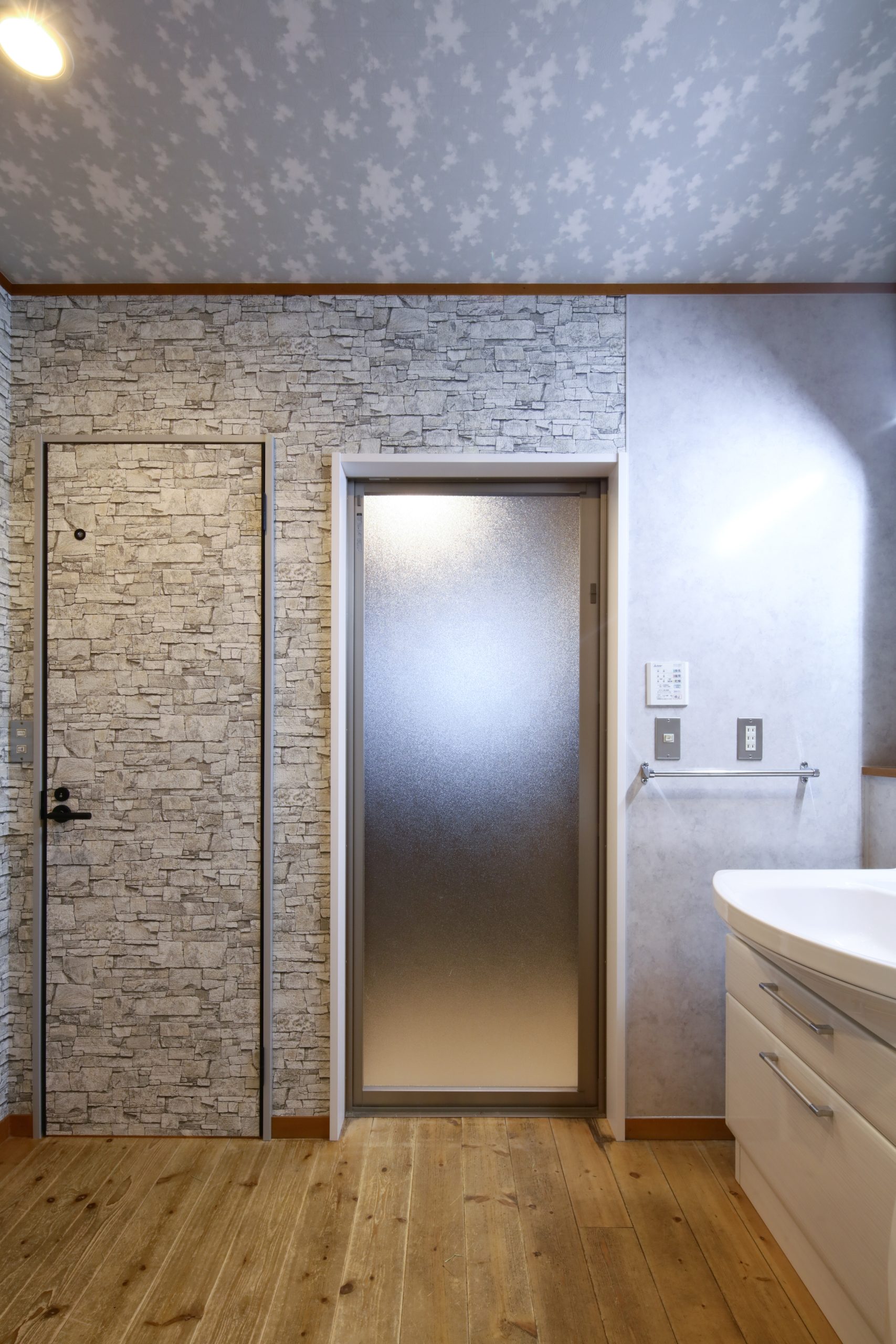 洗面脱衣室の天井には、蓄光クロスをご提案。
