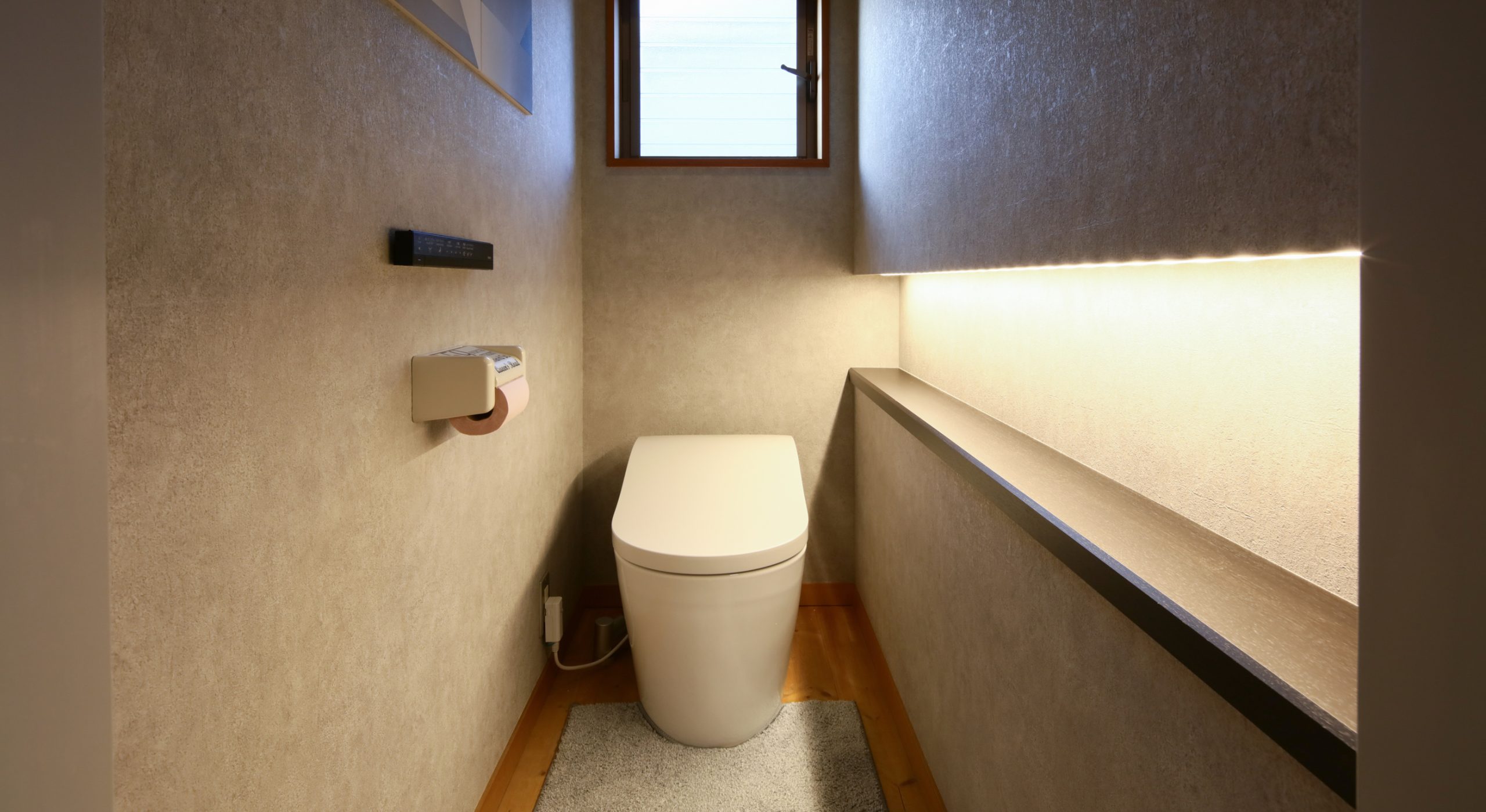 トイレの壁には、エコカラットのデザインパネルキットを設置。