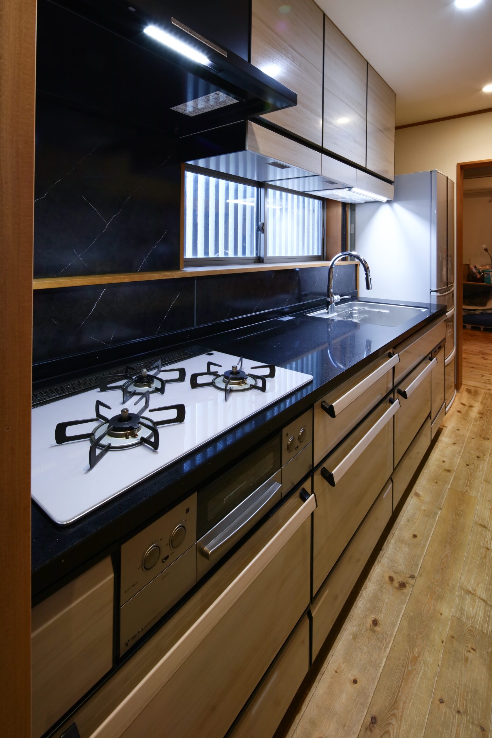 同じ配管系統だった浴室・洗面・トイレに加えて、奥さまのご希望でこの機会にキッチンもまとめてリフォームさせていただきました。