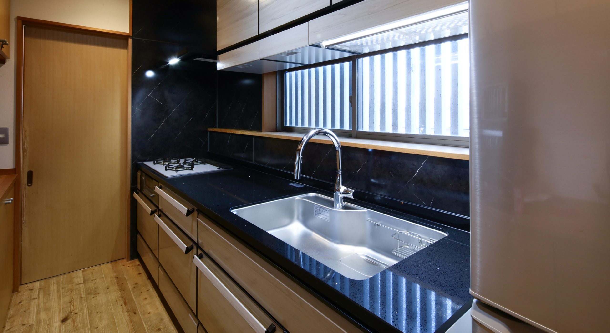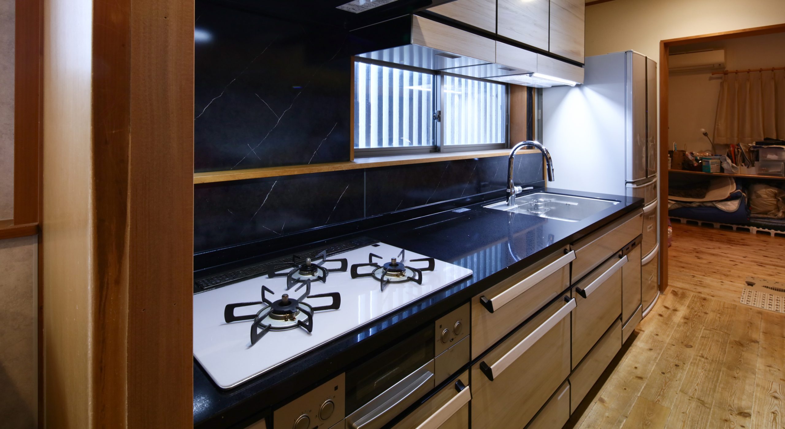 こだわりだったキッチンのフローリングはそのままに、遊び心と大人の落ち着きを兼ね備えた上質な空間に仕上げました。