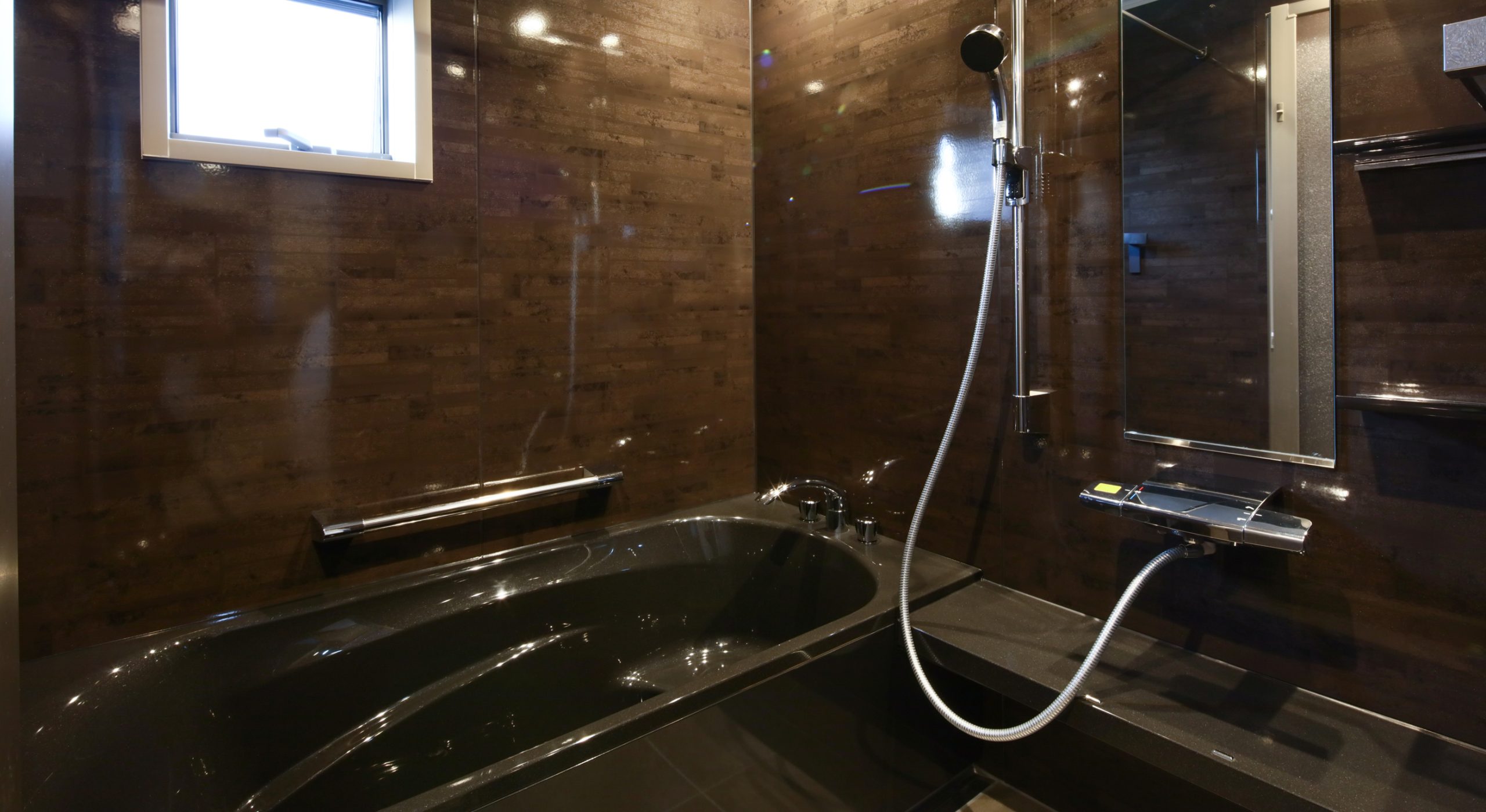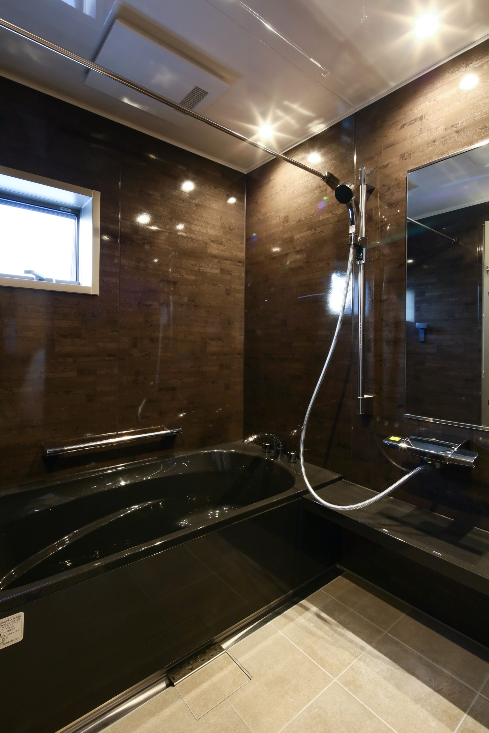 浴室は、思い切って白色から黒色に一新。