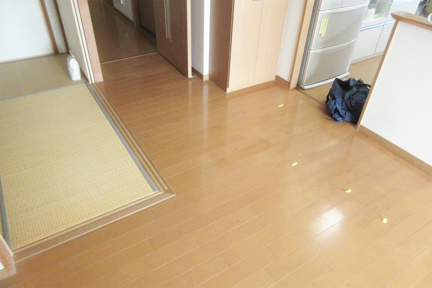 また、床も一部分張り替えさせていただきました。同じ床材がないため、お客さまと相談し色味などを決めました。お客さまのご希望やお悩みをお聞きし、工事箇所や規模を相談させていただきました。