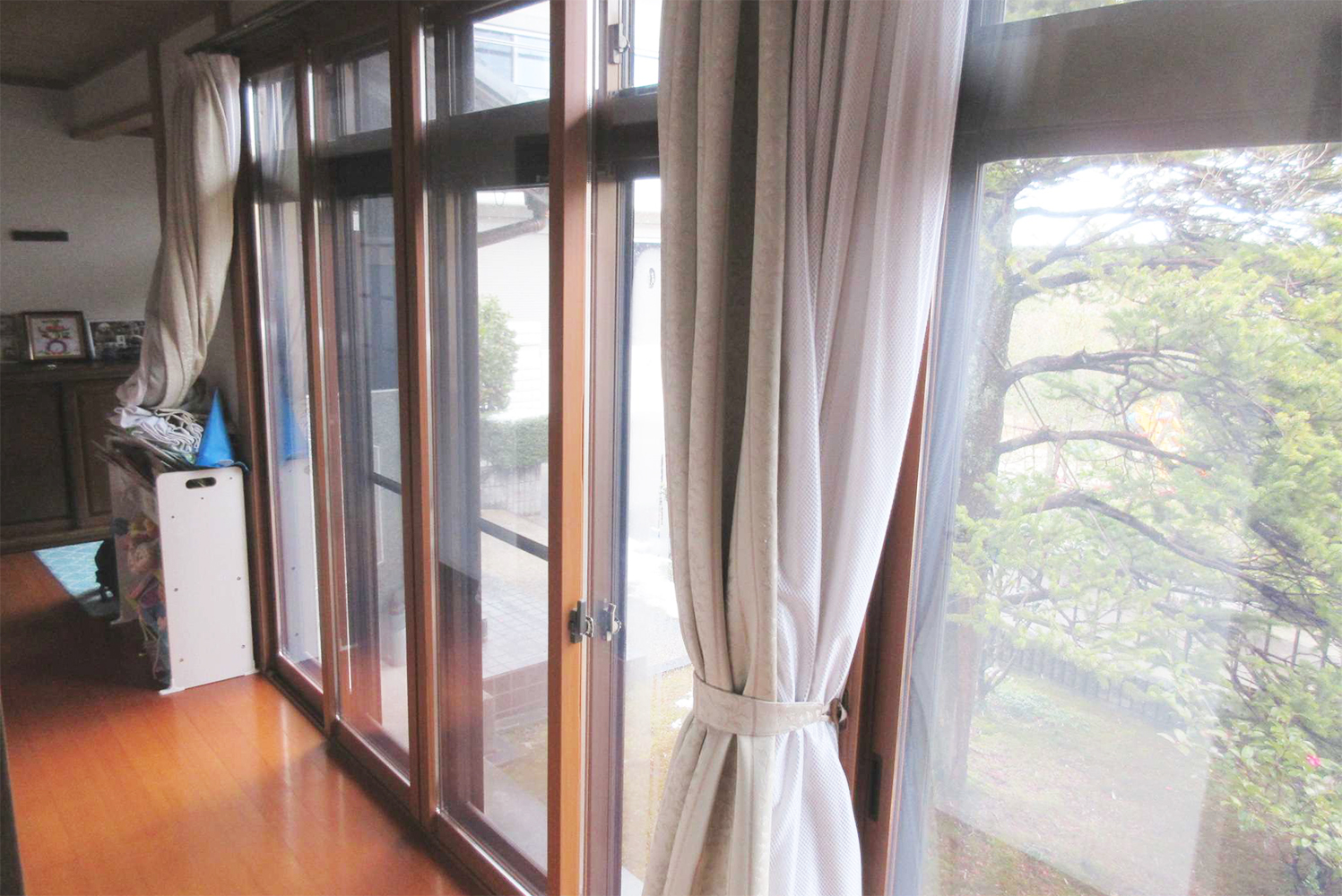 寒さを軽減できるよう、東の掃き出し窓には内窓を設置しました。ガラスは特に断熱性能のよいLOW-Eのペアガラスをご提案しました。工事は一日で完了しました。