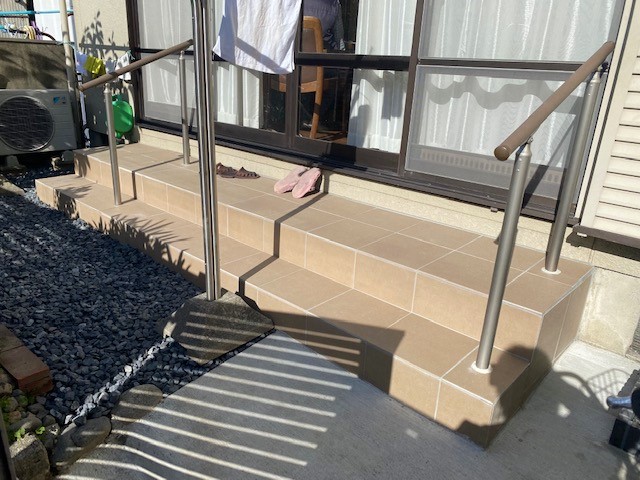 手すりの取替え、タイルの貼替え