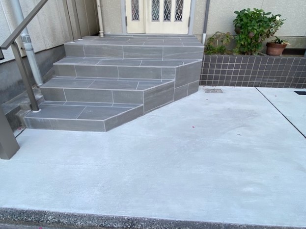お客さまがもっとも悩まれたのは、ブロック塀の壁タイルとポーチの床タイルの色柄合わせでした。