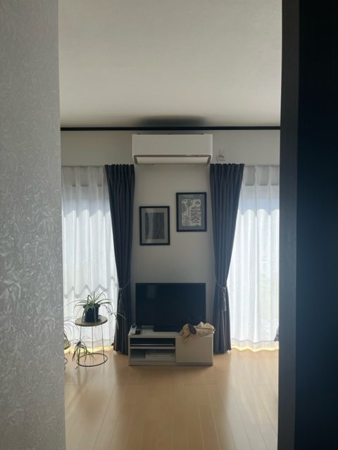 西側と南側の窓の高さが異なるため、カーテンレールを取付ける下地位置を調整させていただきました。