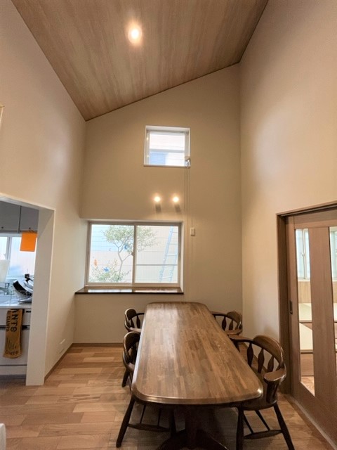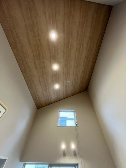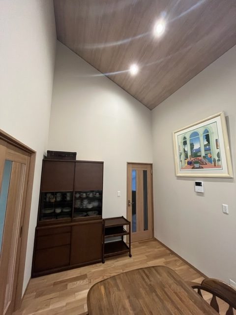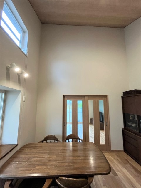 吹き抜けのダイニングは、テーブルまわりが暗いとのことでしたので、スポットライトを増設させていただきました。