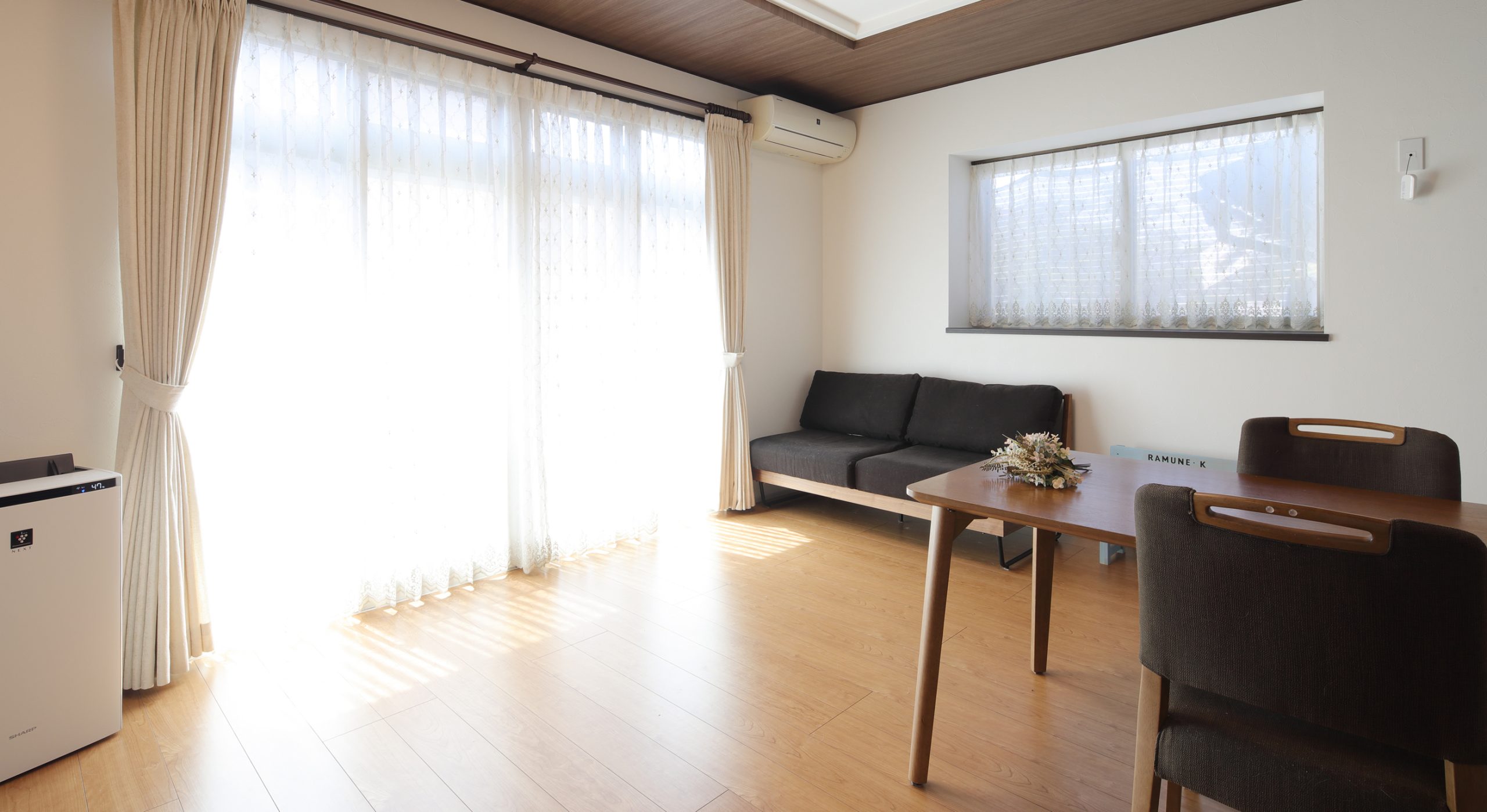 リビングの掃き出し窓には内窓を採用して、開口部の断熱性能を向上。