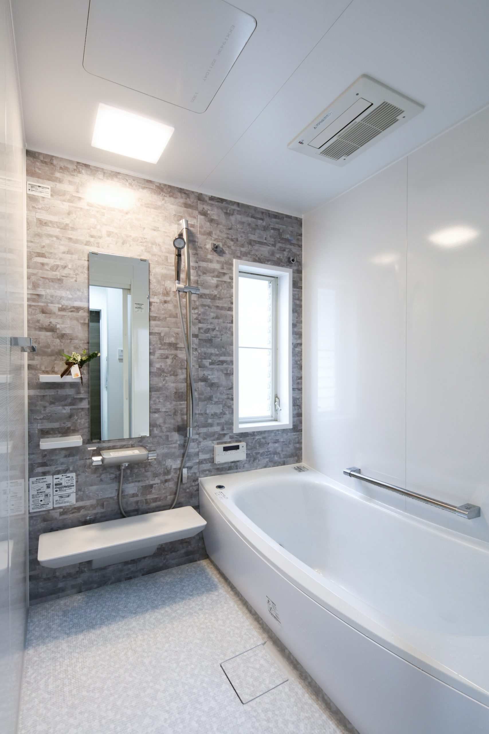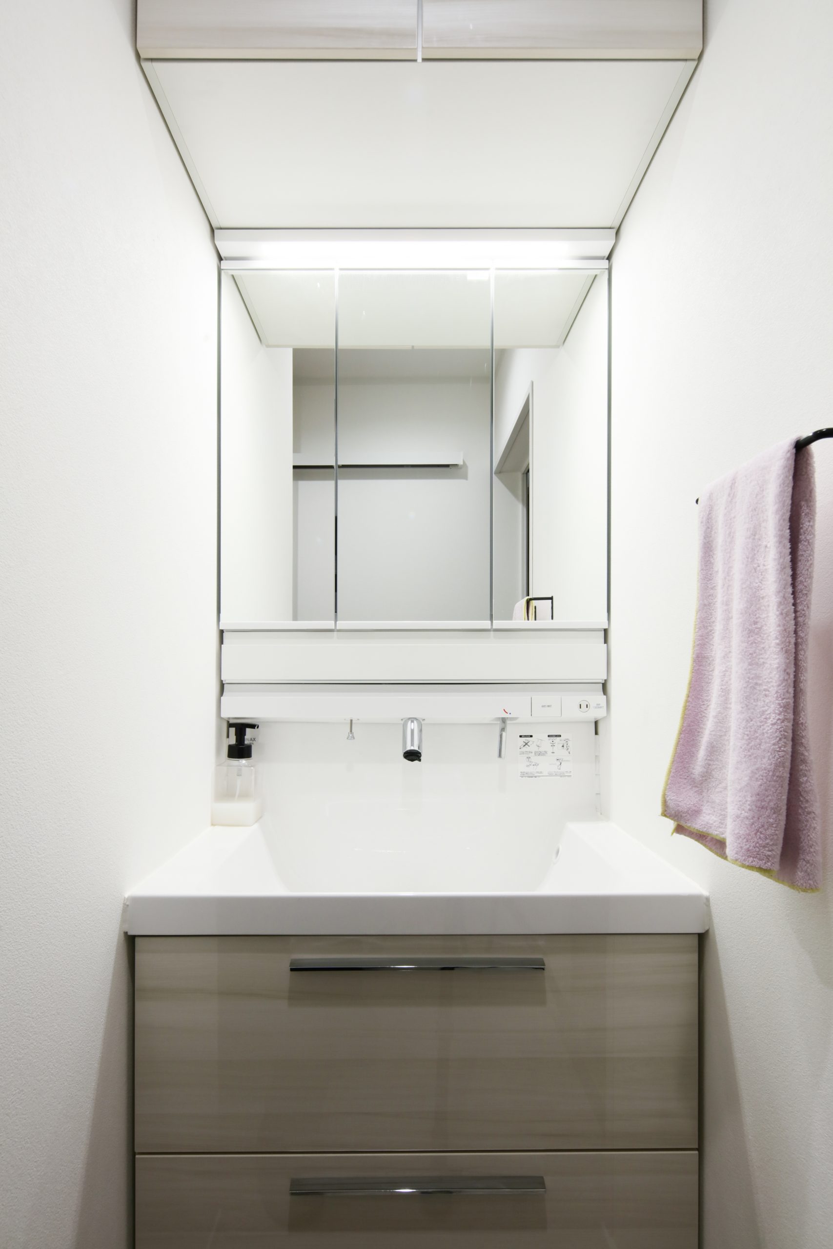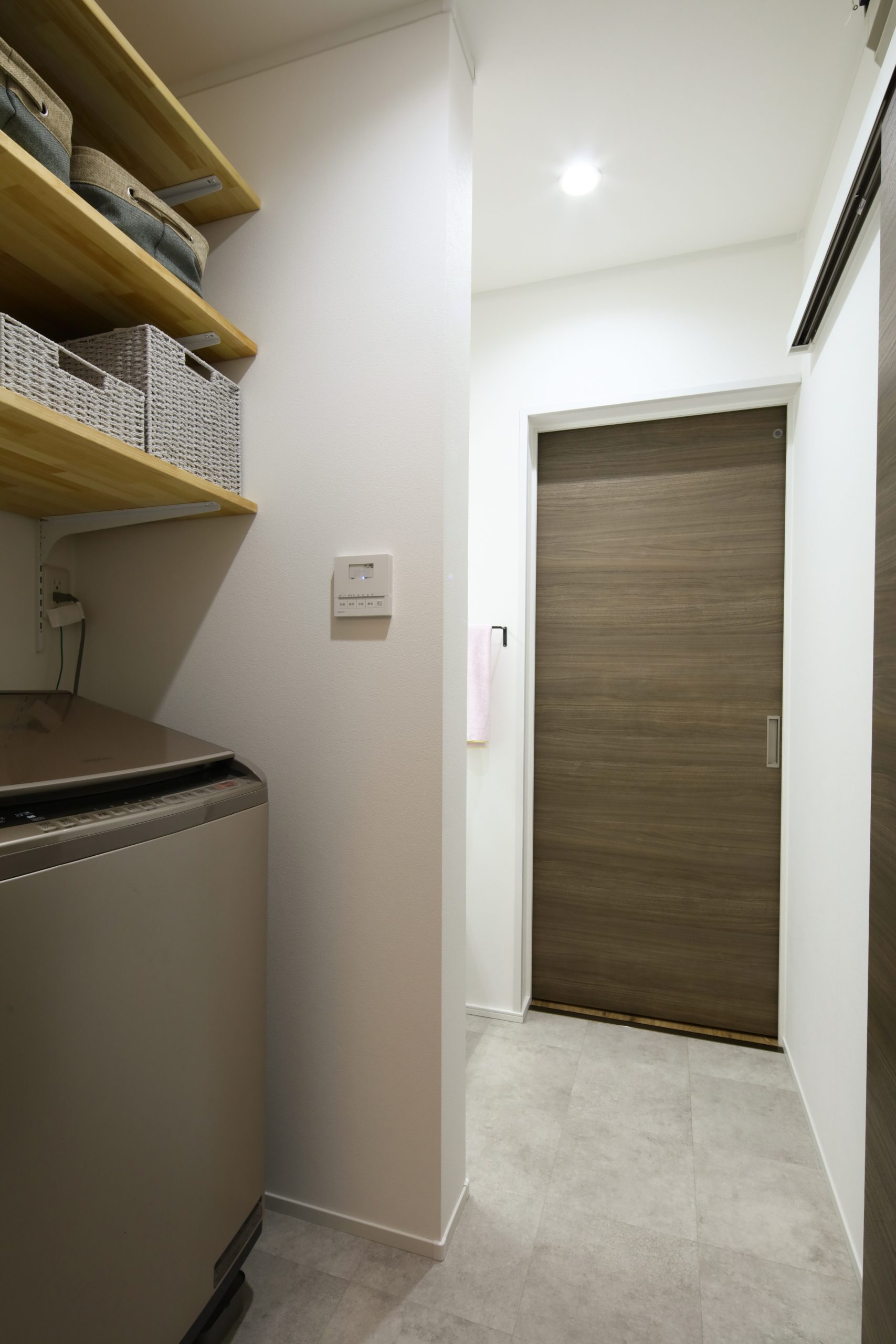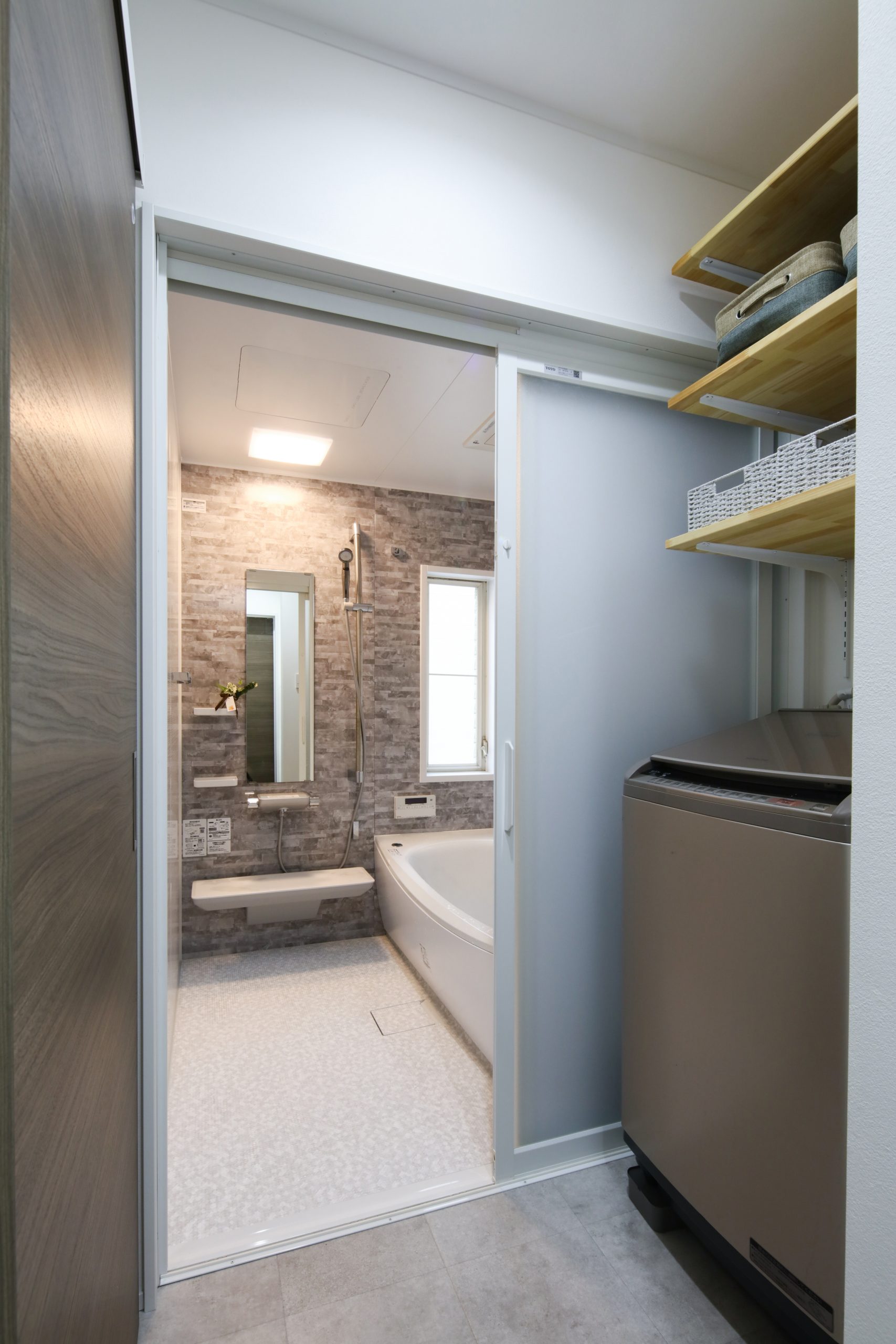 ダイニングをなくした代わりに、浴室を0.75 坪から1 坪タイプに、洗面脱衣スペースも広げて、快適な水まわり空間に生まれ変わりました。