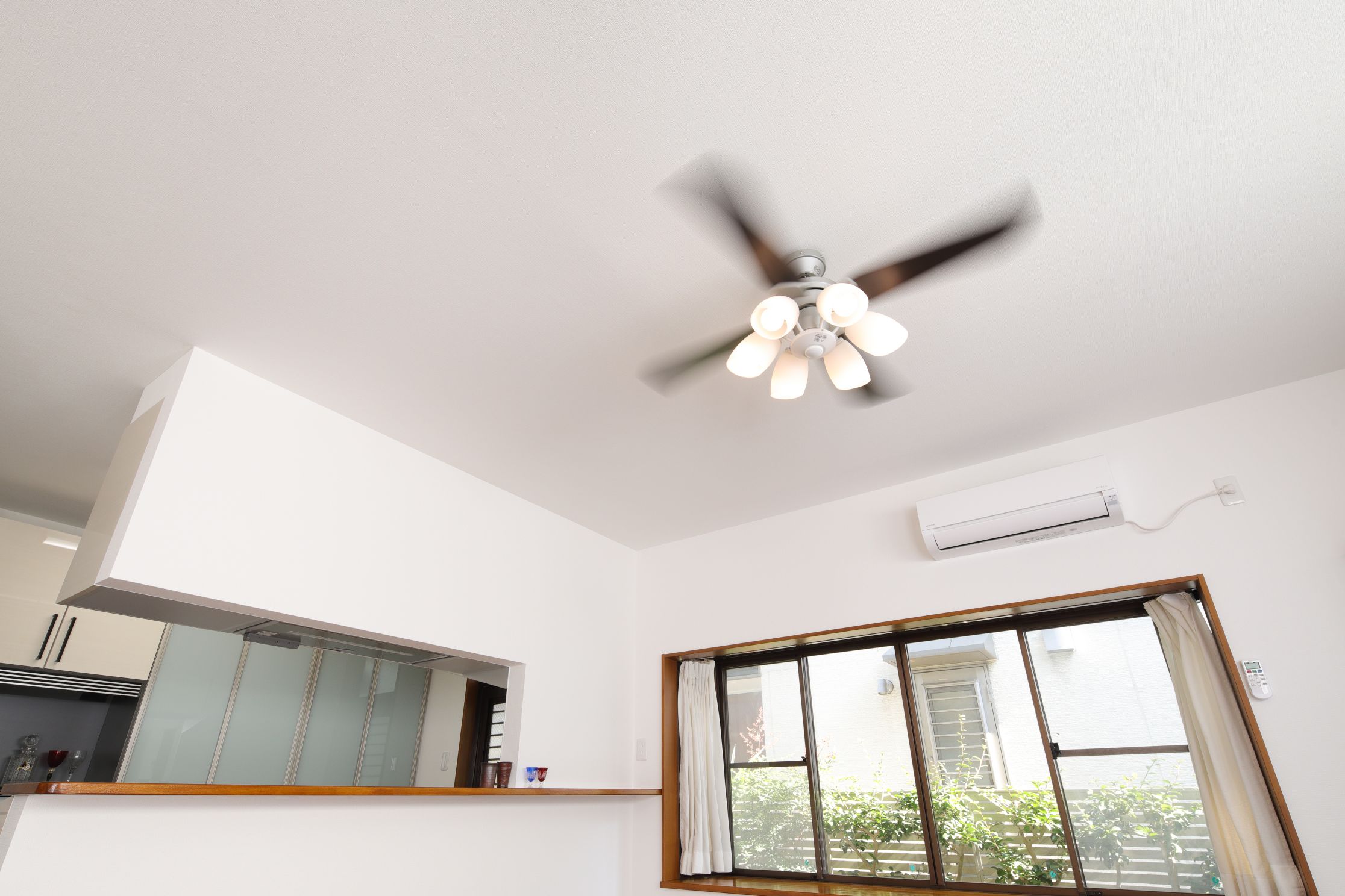 ダイニングには、新たにシーリングファンを設置。
