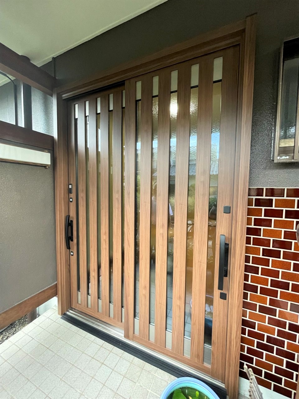 玄関引き戸は、断熱性の高いタイプへお取替えさせていただきました。