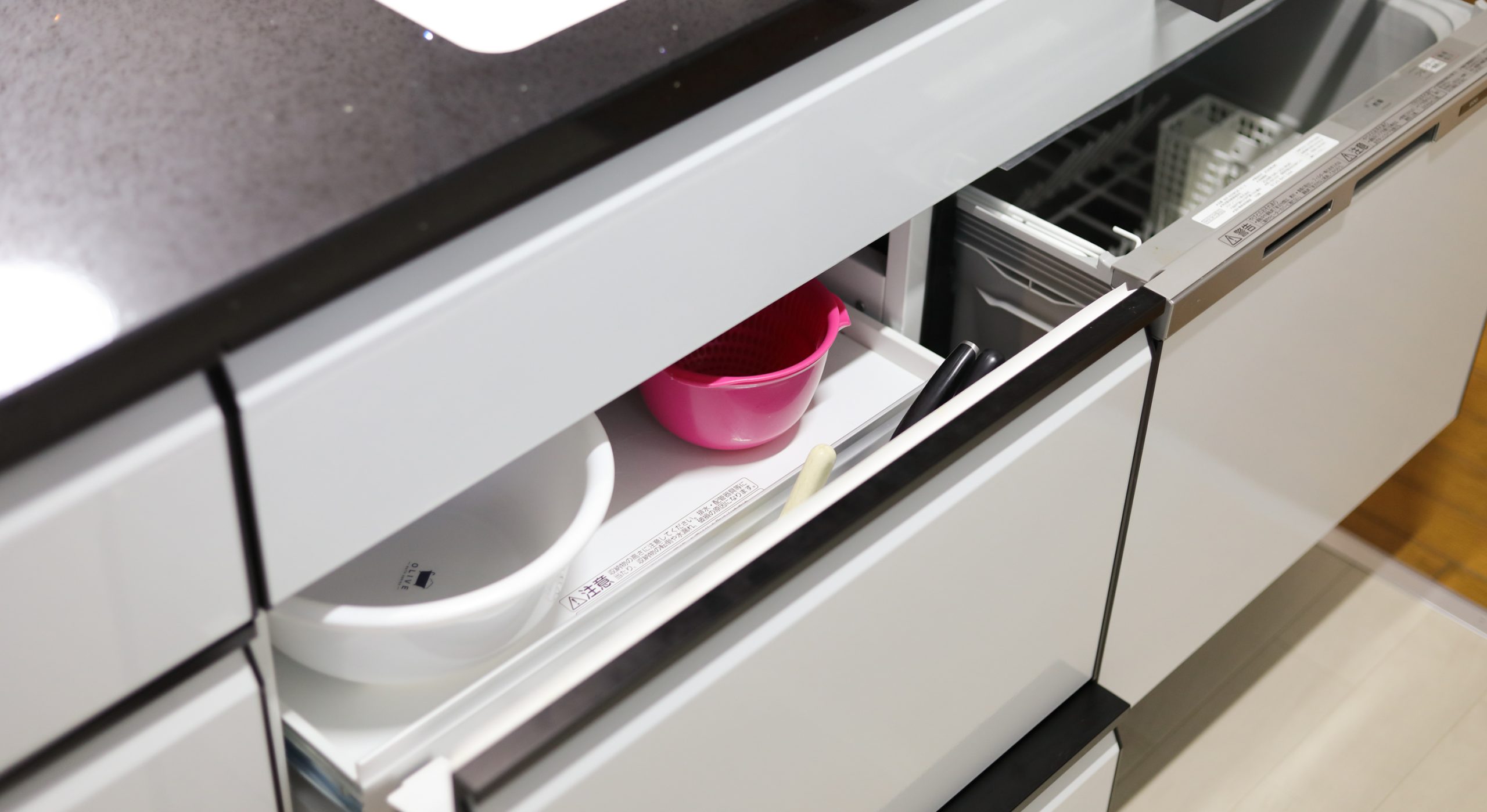 キッチンがL型、扉タイプのキッチンをお使いとのことでしたが、現地の調査(寸法)をさせて頂くと、動線の長いL型キッチンより家電収納を別に作る、二列型のキッチンの方が使いやすいと思い、タカラスタンダードのショールームへ来場いただき、ご提案をさせてただきました。もちろん引き出しタイプで物の出し入れが容易で、かつ、収納量が増えます。アイラック収納をご提案させて頂いたので、吊り戸部分の活用もグッと楽になると思います。ショールームでも大変気にいって頂きました、高品位ホーローキッチンパネルも全面の取付で、お掃除は大変簡単になりました。そして今までキッチン天板に置かれていた電子レンジ・コーヒーメーカー・トースターも家電収納の設置ですっきりと使いやすくなります。これからのお住まいが、使い易くてお手入れの簡単な最高のキッチンに生まれ変わると思います。