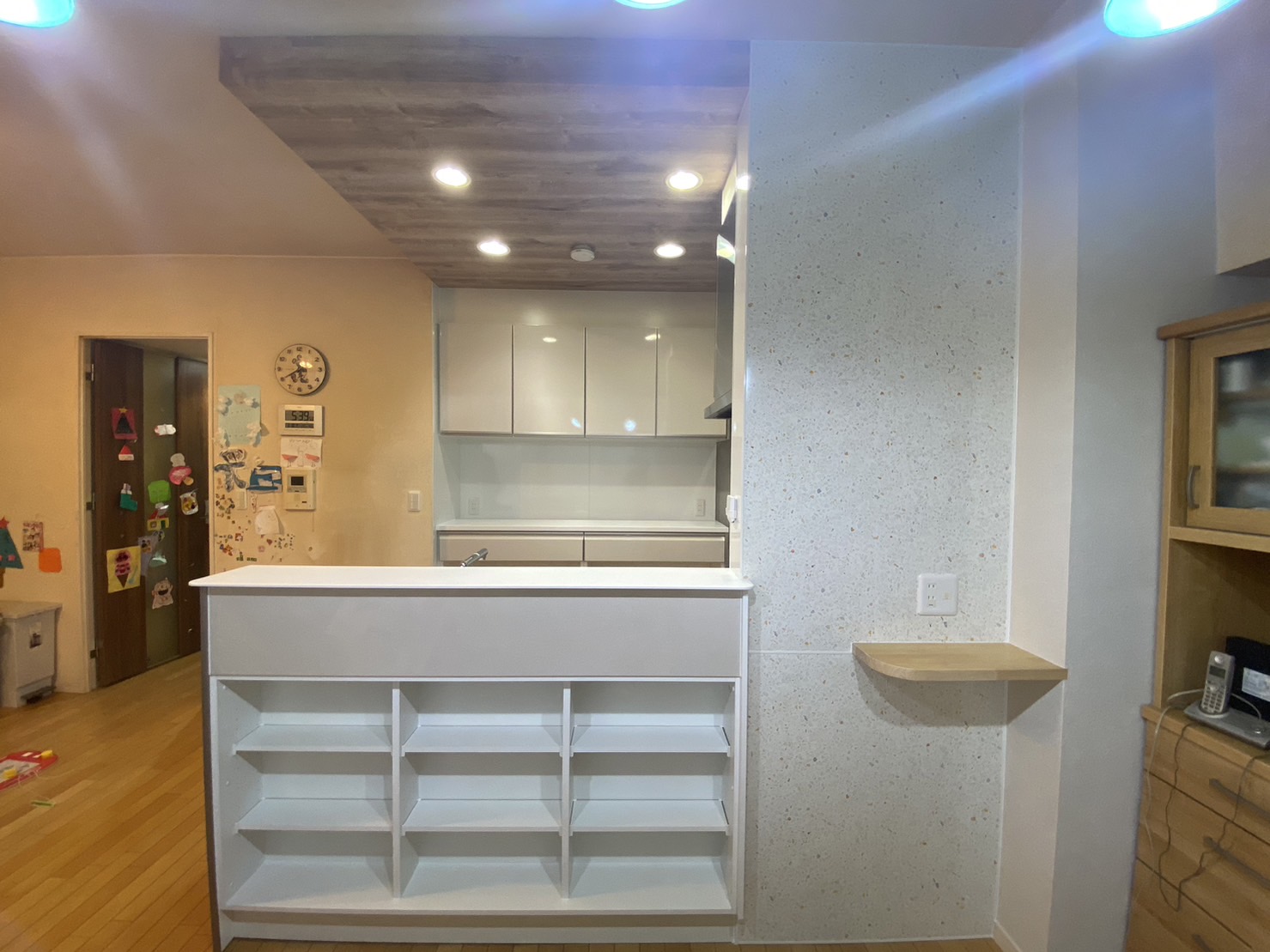 また、撤去する予定だったキッチンカウンターは、お孫さんがケガをすることがないようにすっきりカット・研磨して綺麗に造作。