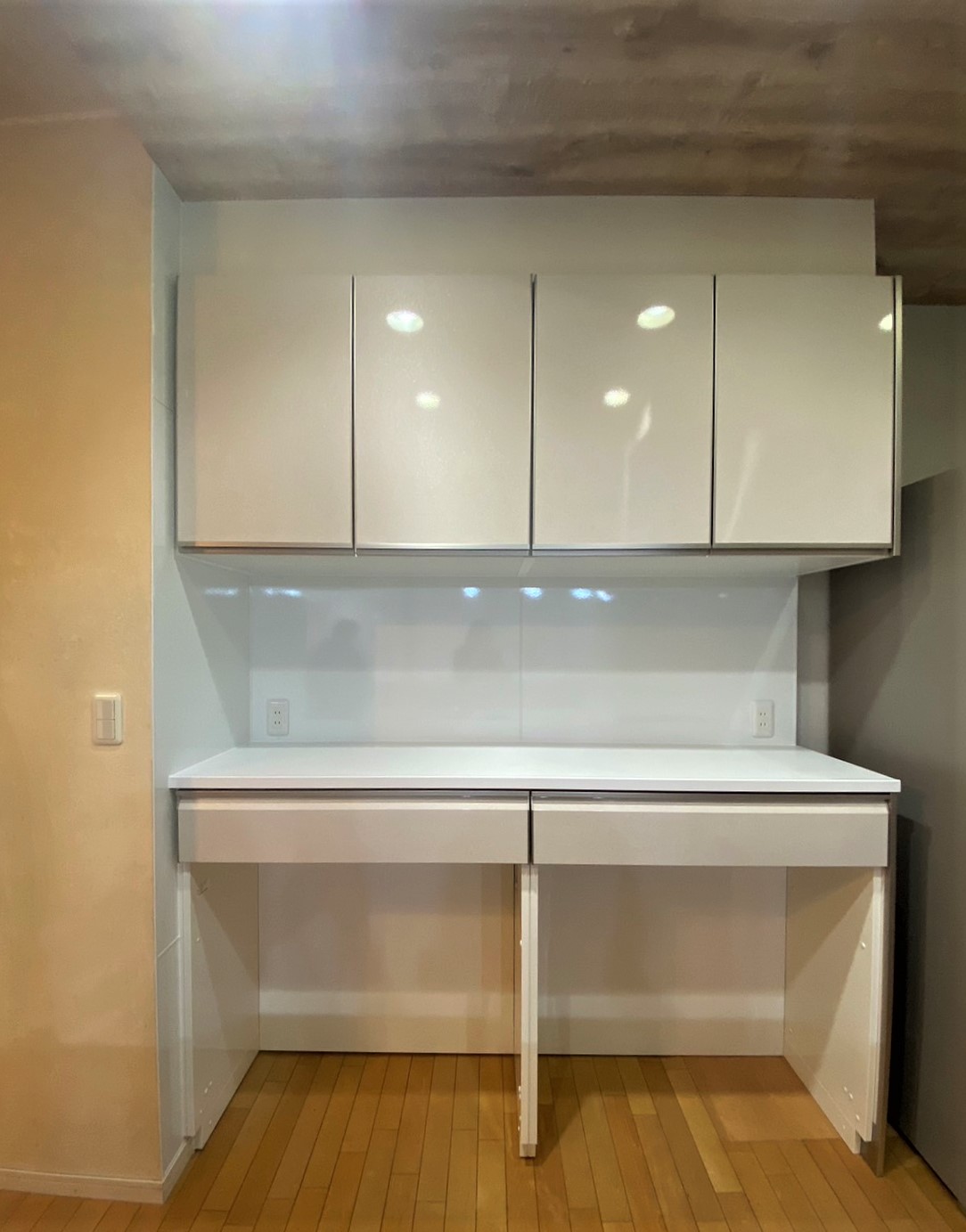 当初は、キッチンだけ取替えて、背面収納はそのまま残して下段にゴミ箱を設置するご要望でした。