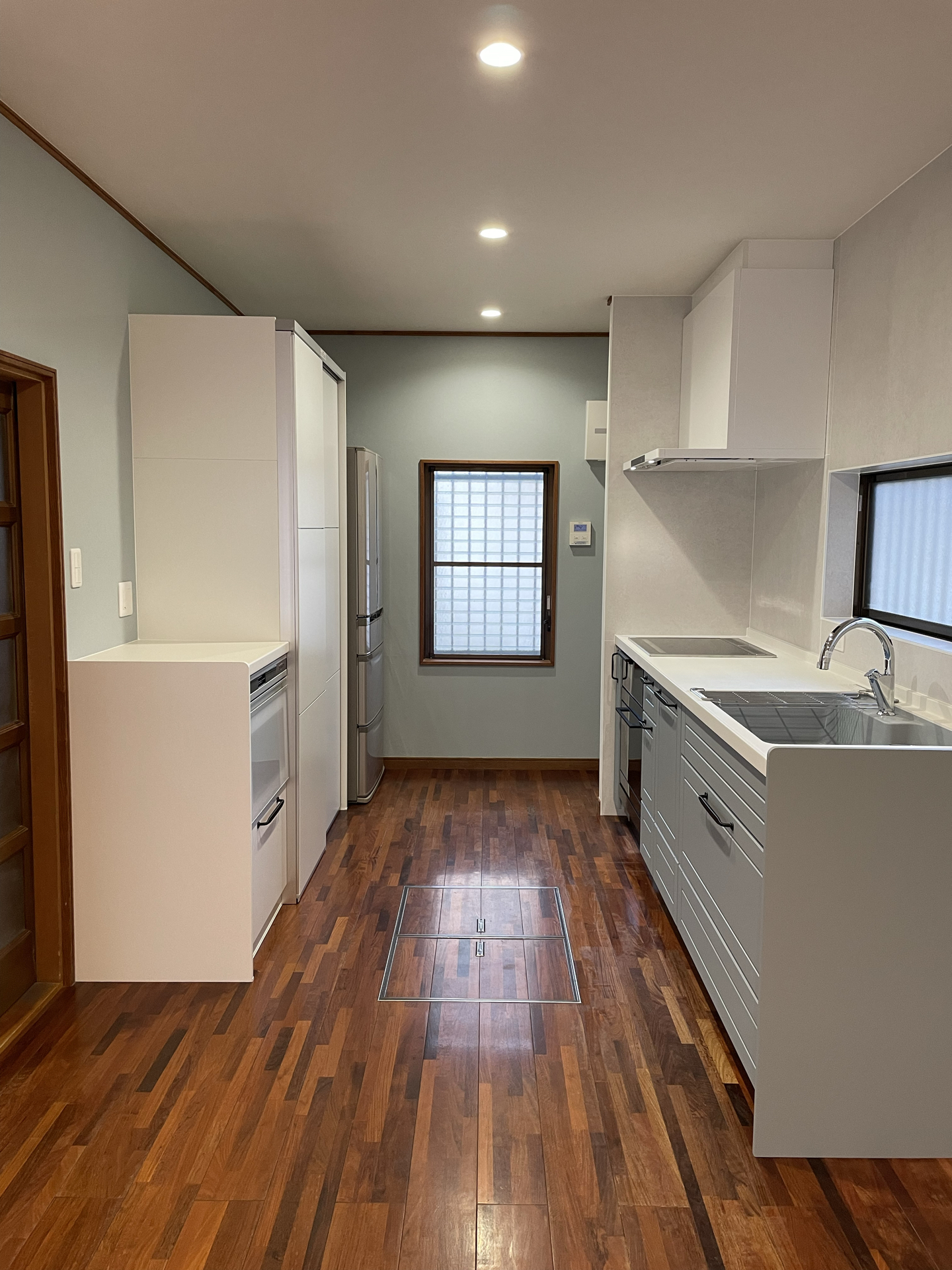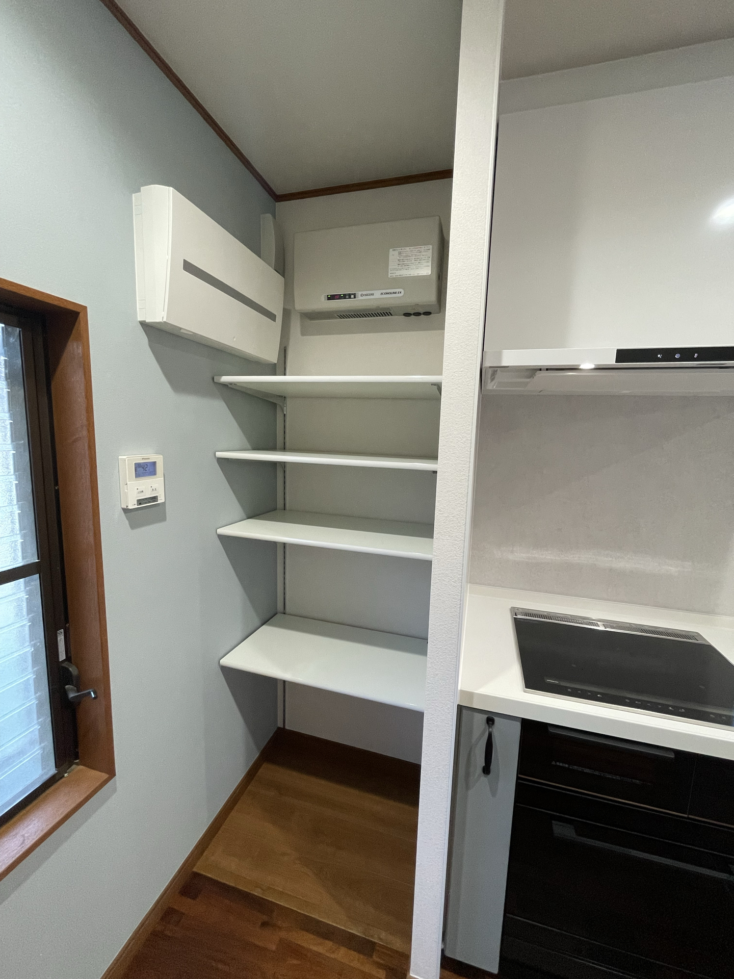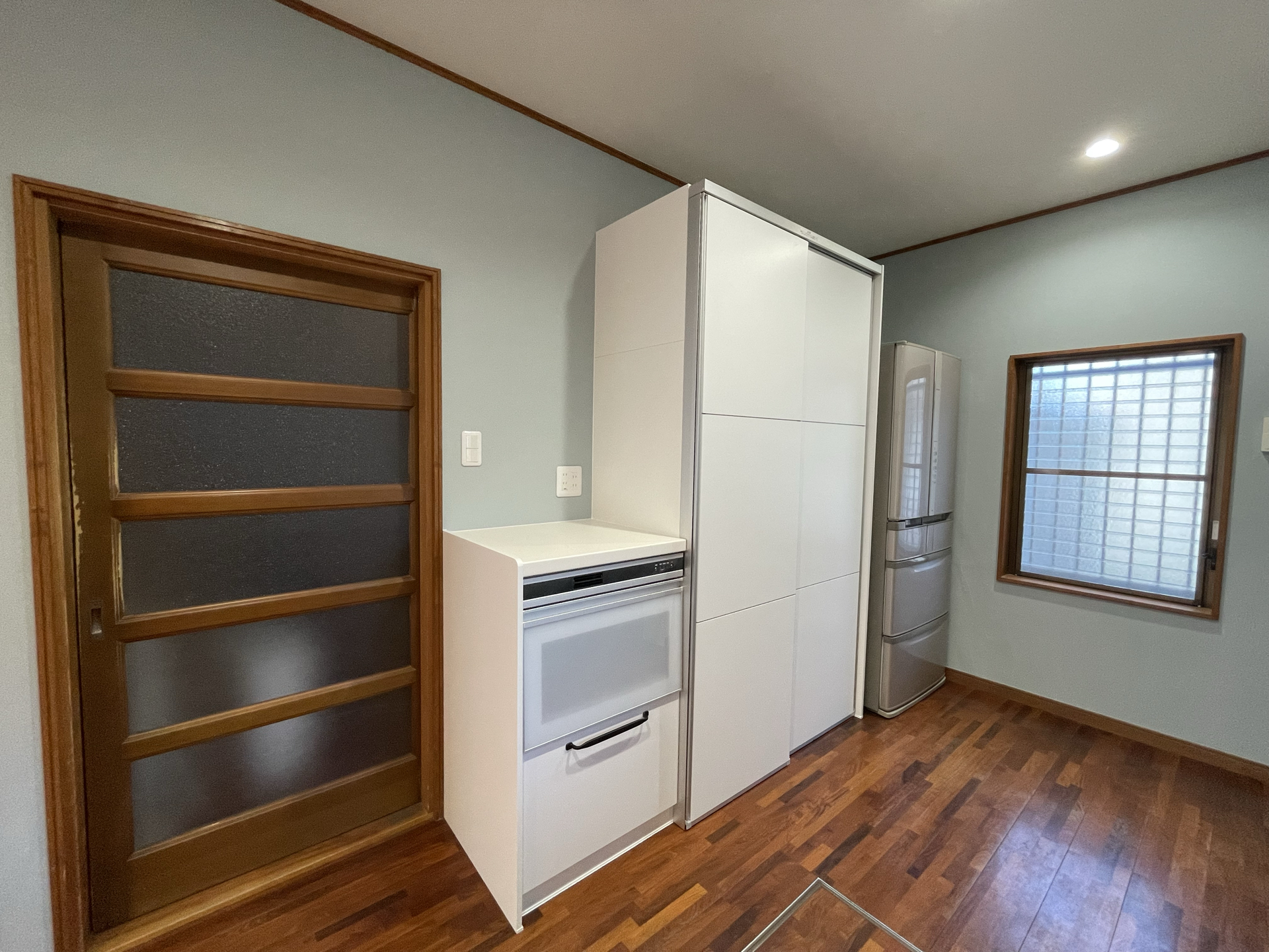 照明をダウンライトに取替えて、パントリーにある分電盤も取替えることで、空間をすっきりした印象に仕上げました。