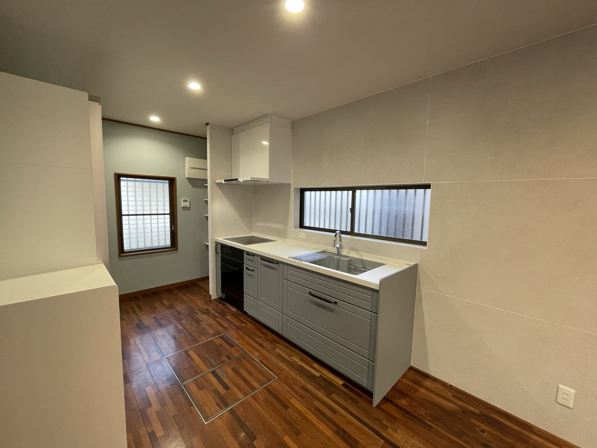 システムキッチン取替え、カップボード取替え、パントリー新設、クロス貼替え、照明取替え、分電盤取替え -