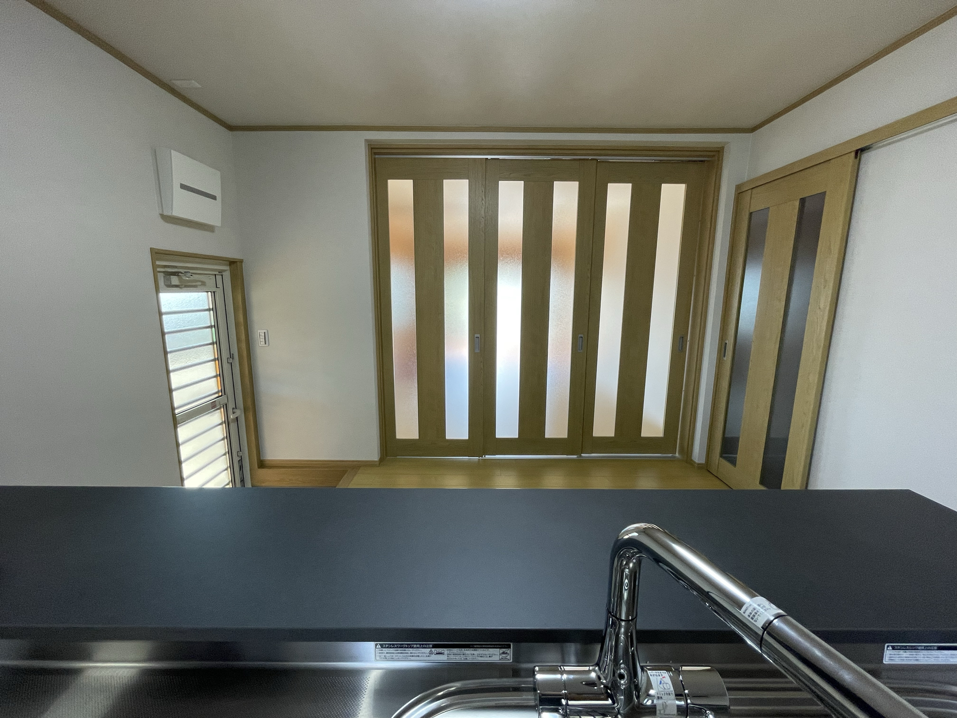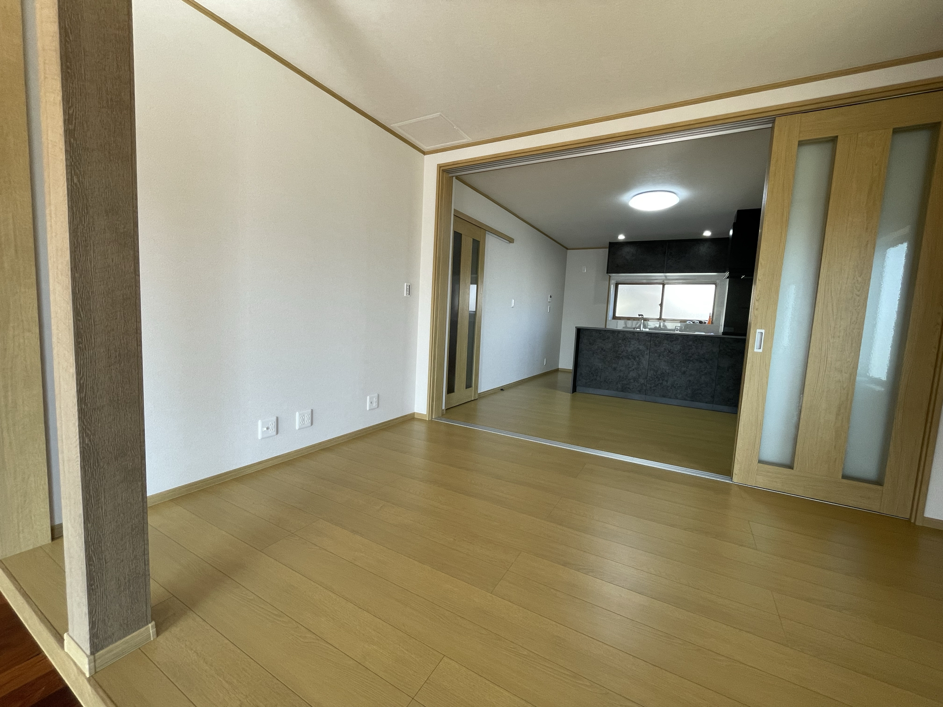リビングとダイニングの間にある和室を洋室にして、大きなワンフロアへ間取り変更させていただきました。