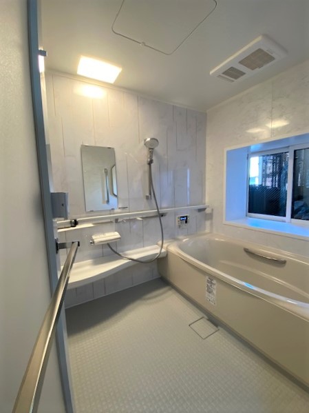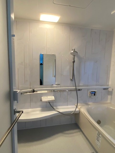浴室は、システムバスを取替えて、浴槽のまたぎの高さが以前よりも15cmほど低くなりました。