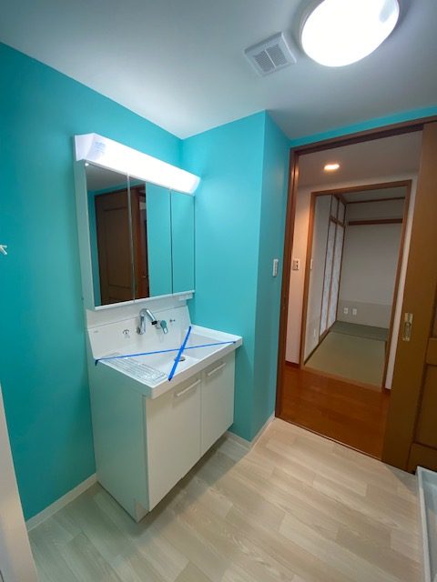 洗面化粧台取替え、クロス貼替え