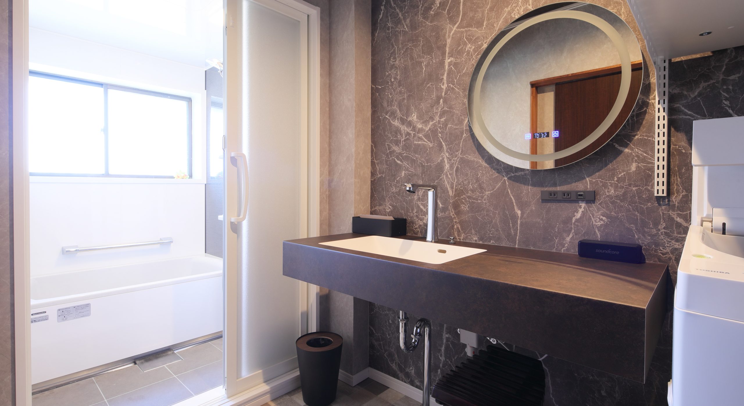 中古物件を購入する予定のお客さまから、浴室と洗面をおしゃれなホテルのように広く改装したいとご相談をいただきました。