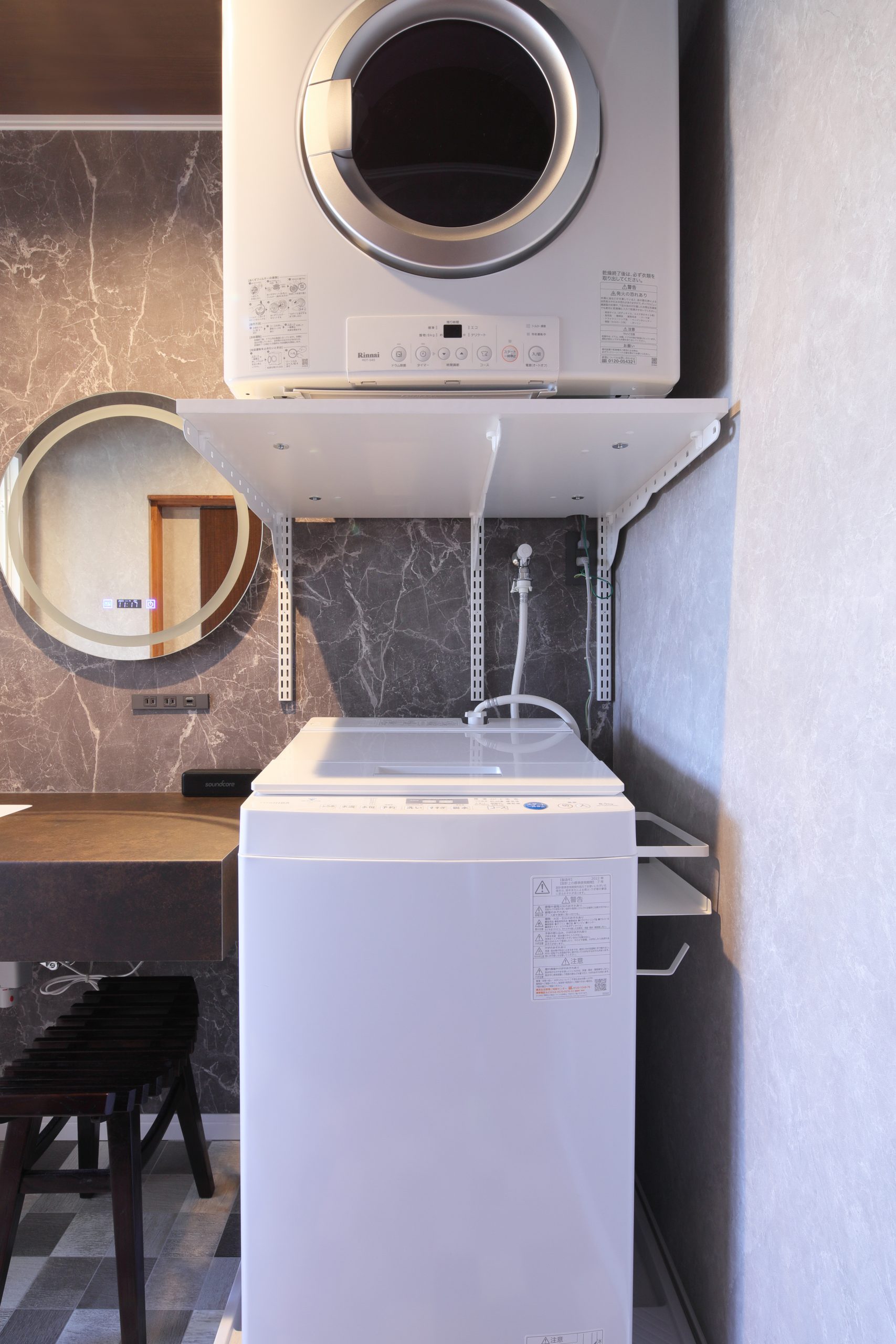 また、ガス衣類乾燥機も、壁付けの専用台「フィットラック」でスタイリッシュに設置。