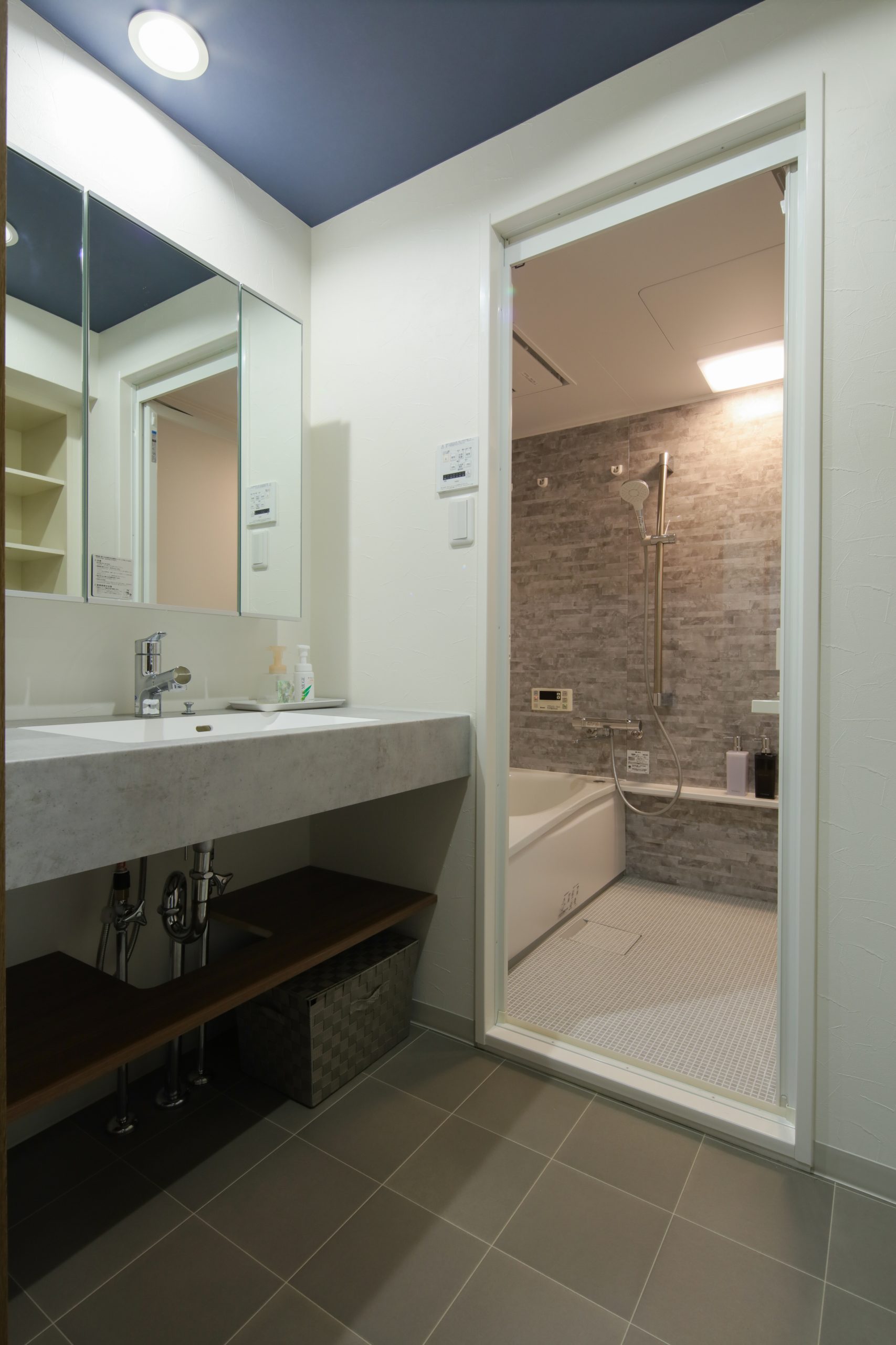 グレー系で統一した ホテルライクな洗面・浴室空間