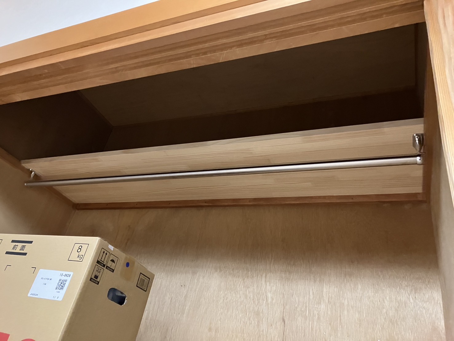 洋服を収納しやすいように、押入れにはパイプハンガーを取付け。