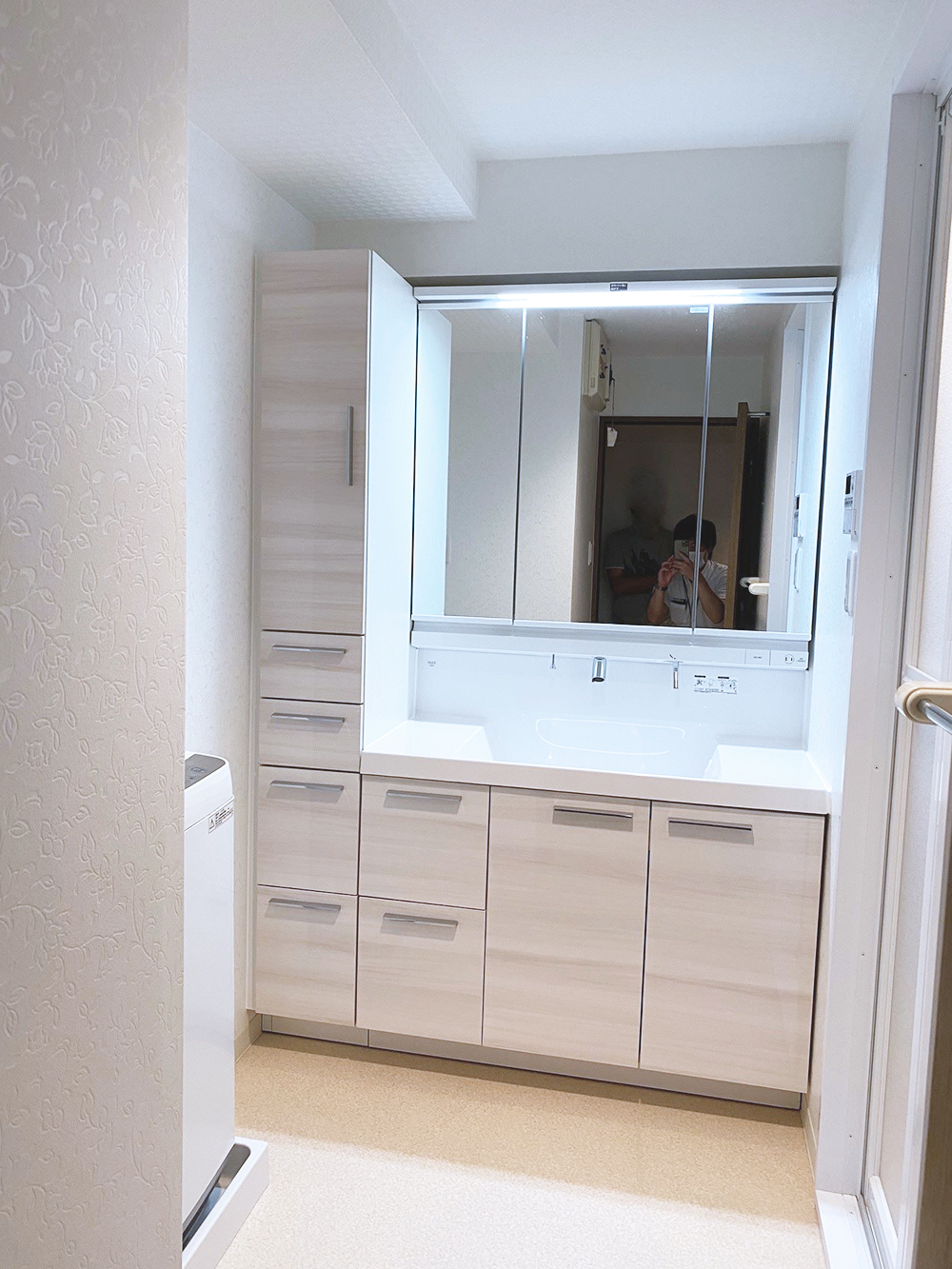 マンション特有の洗面台サイズからの取替時は、トールキャビネットの設置がお勧めです!