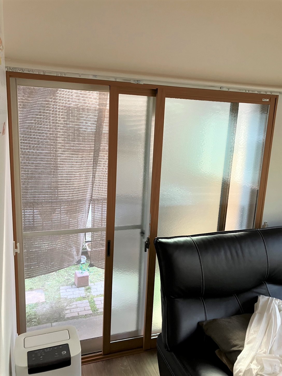 型板(かたばん)ガラスにすることで、気になっていた外からの視線もシャットアウトできました。