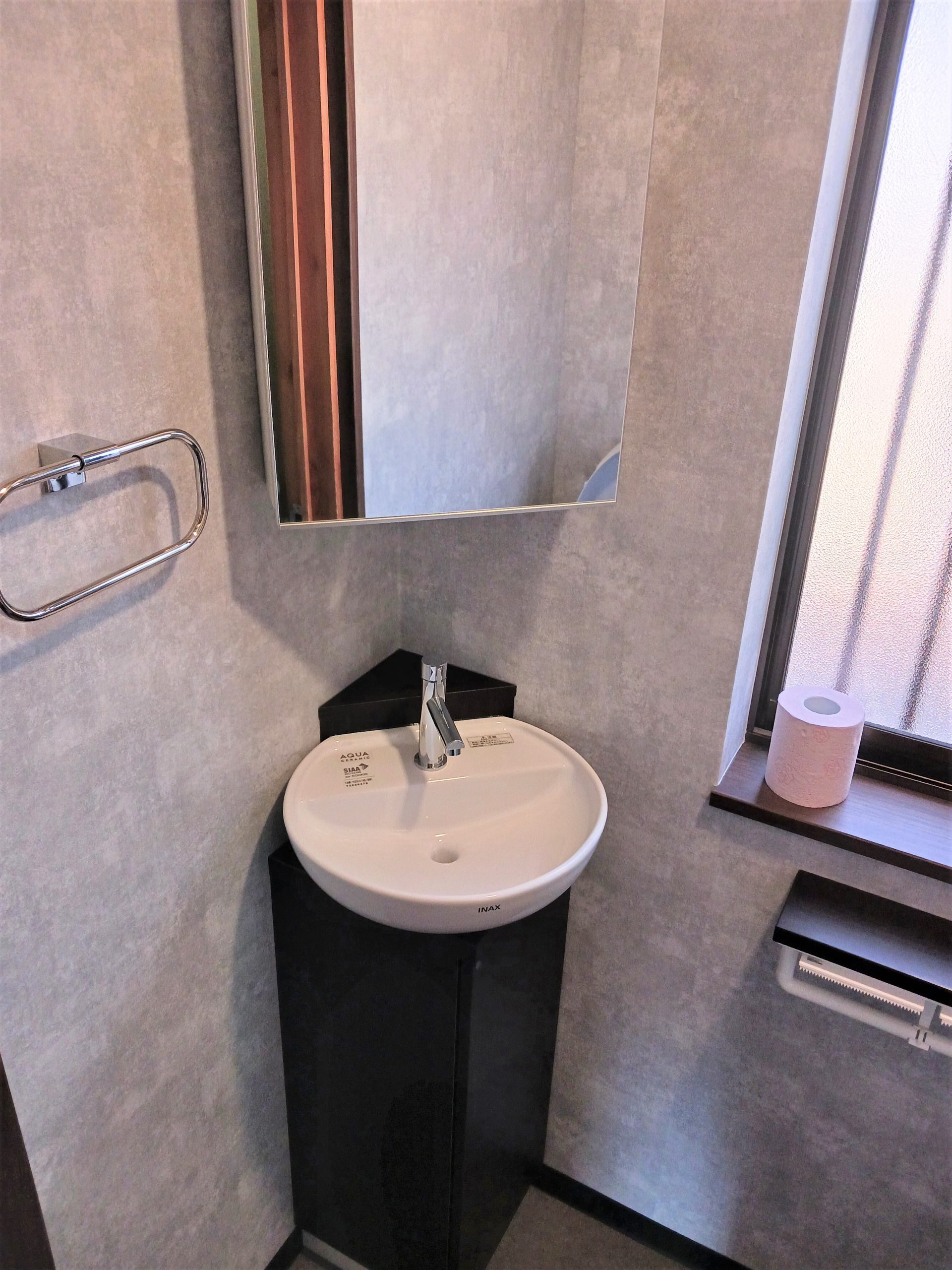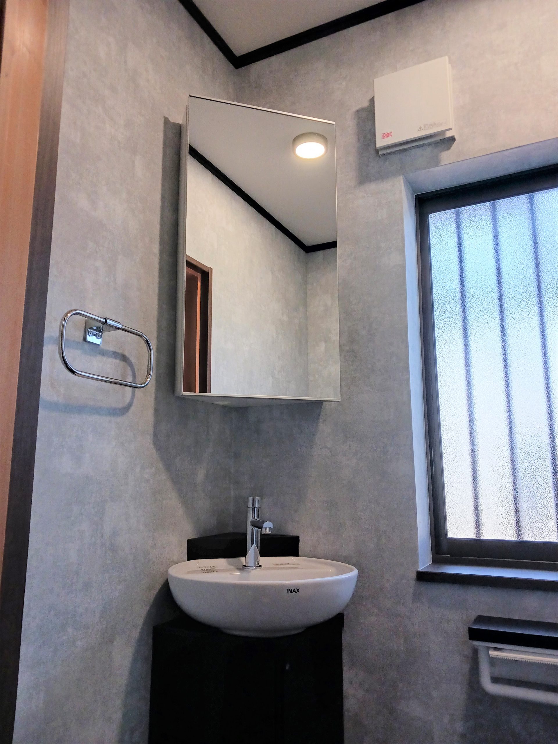 手洗い器とミラーキャビネットなどのアクセサリー類も取替えました。