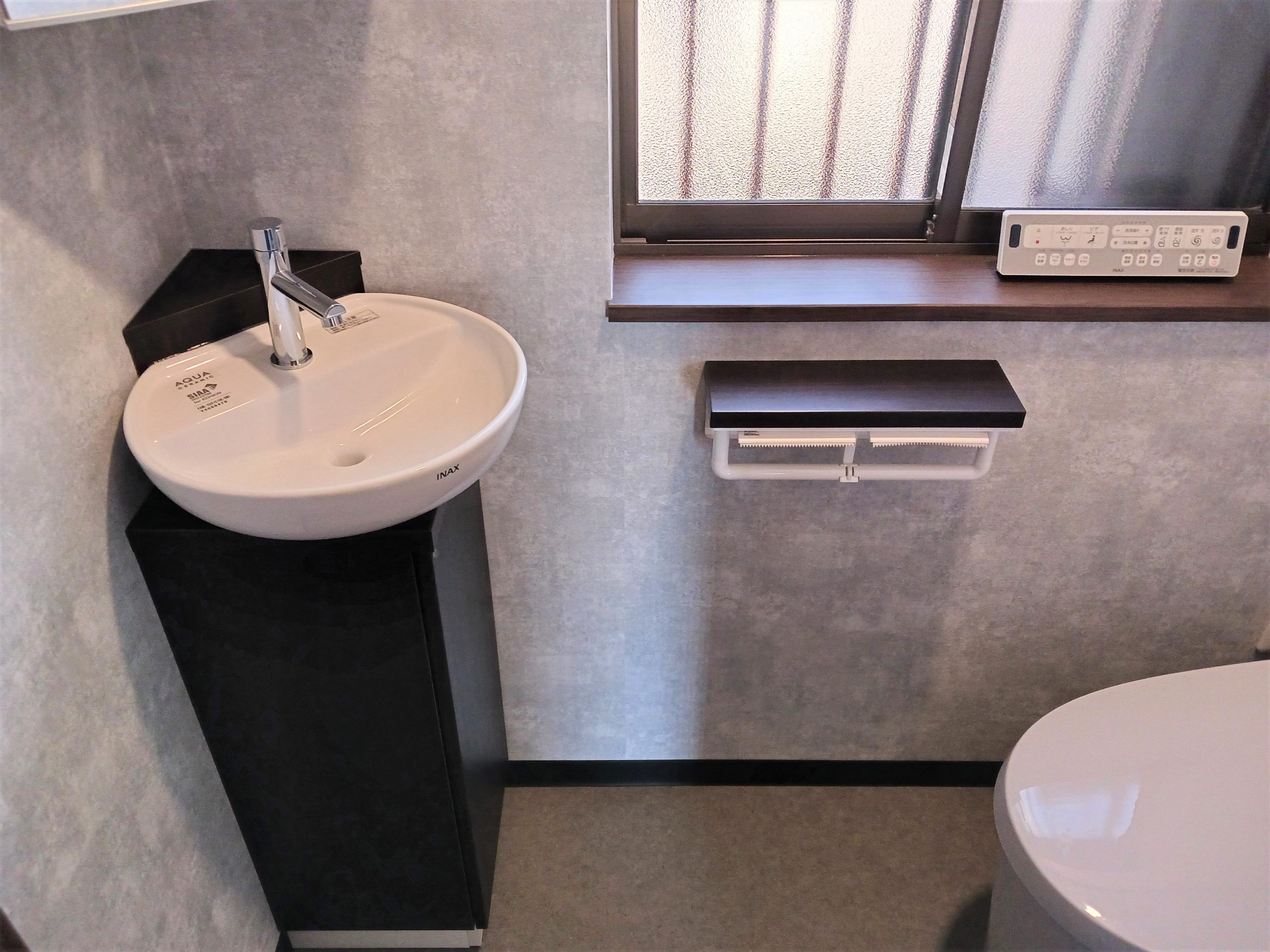 モダンで落ち着いたトイレ空間 タイルからクッションフロアに張替えてお手入れもカンタンに