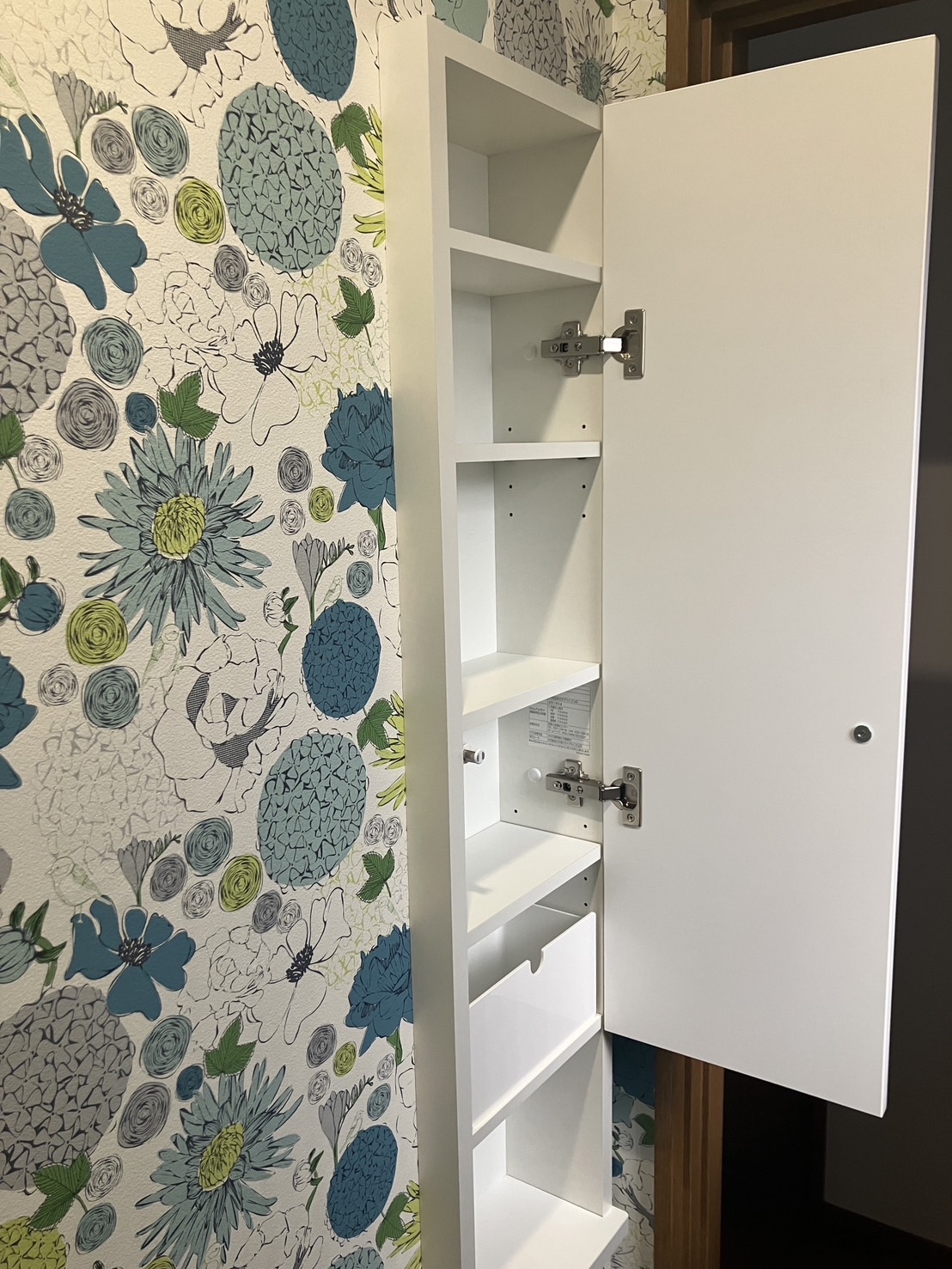 埋込み収納は、ひとまわり大きいサイズに変更することで収納力アップ。