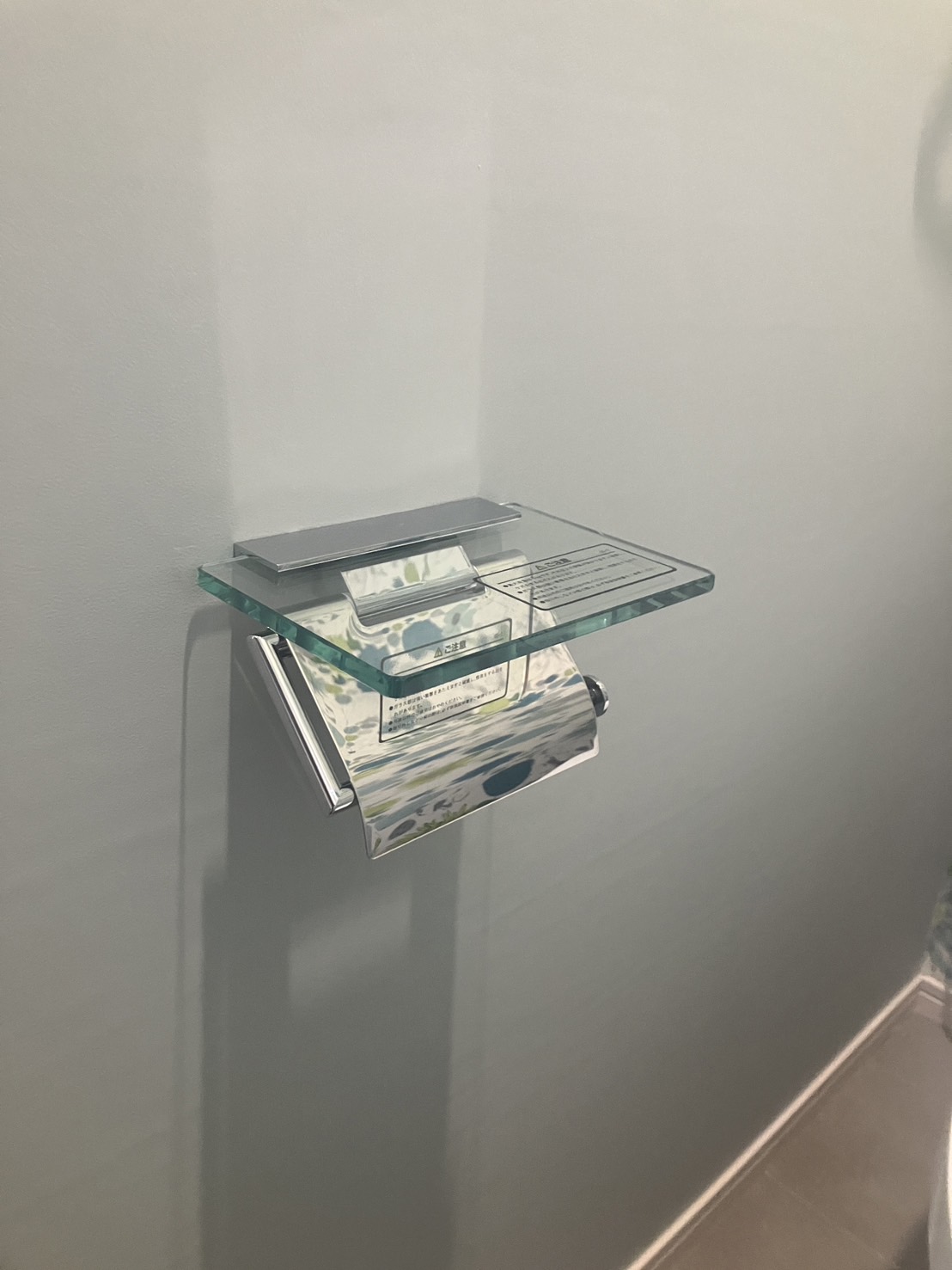 ペーパーホルダー・タオルリング・手すりは、KAWAJUN(カワジュン)製のシルバーカラーで統一。