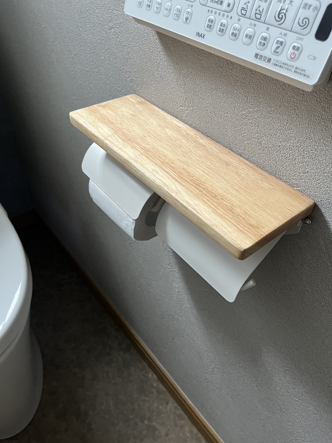 ペーパーホルダーは、どちらも携帯電話を置けるタイプを選定。